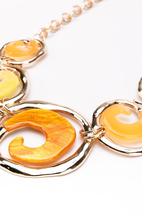 Formele rotunde sunt simbolul perfecțiunii, al continuității și al feminității. Colierul Riana îmbină aceste elemente într-o compoziție echilibrată, care atrage privirea fără să încarce ținuta. Elementele circulare sunt distribuite uniform, oferind fluiditate și lejeritate vizuală. Este acel tip de accesoriu care „leagă” întreaga ținută și îi oferă un plus de stil fără efort.