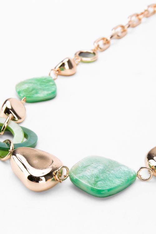 Colierul cu pietre decorative Atena este accesoriul ideal pentru femeia care își dorește un look sofisticat, dar cu personalitate. Cu un design statement, forme organice și combinații armonioase de nuanțe, acest colier damă transformă instant orice ținută într-o apariție memorabilă.