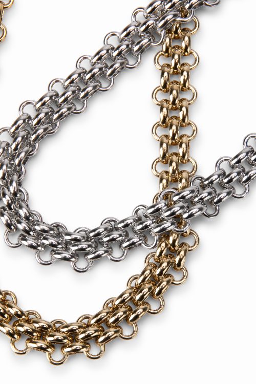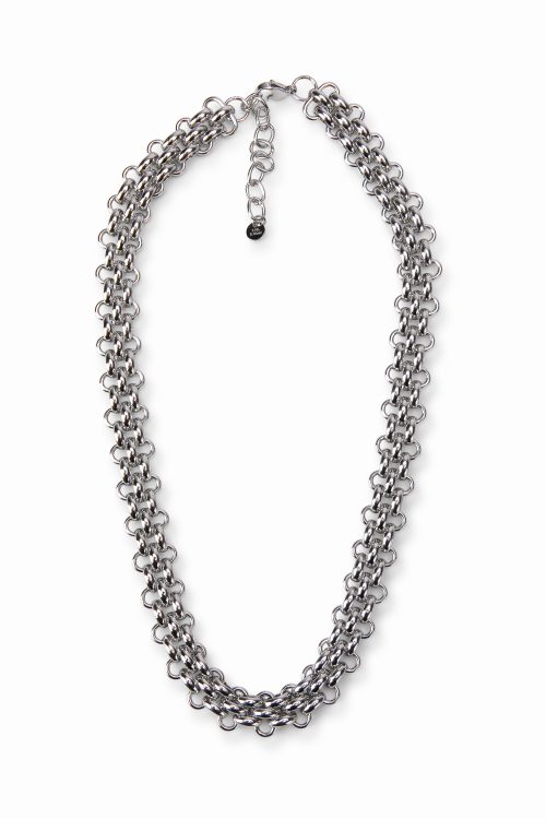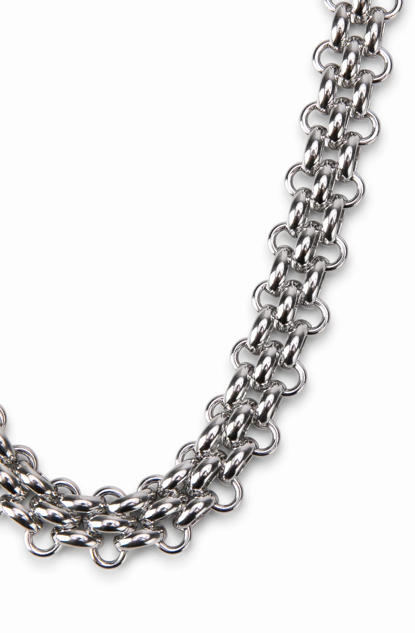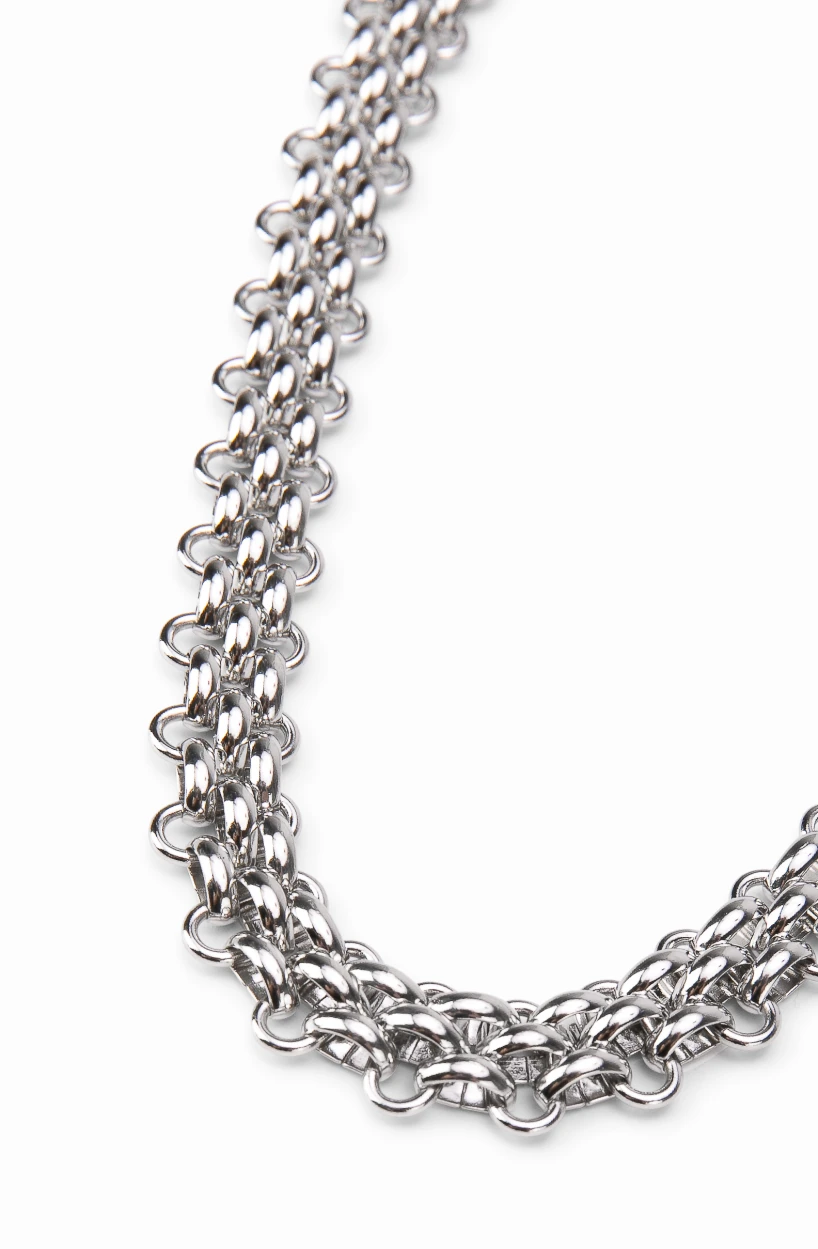 Materialele din care este realizat colierul sunt atent alese pentru a oferi durabilitate și confort. Zalele sunt realizate din materiale rezistente, iar finisajul elegant oferă o strălucire subtilă care completează armonios designul accesoriului. În același timp, colierul este ușor și confortabil, ceea ce îl face potrivit pentru purtarea zilnică.