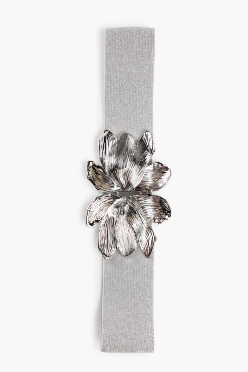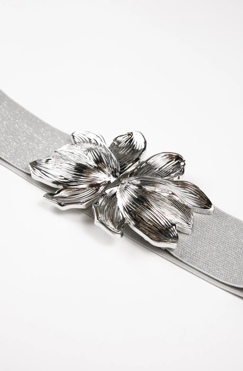 Elementul central al acestei curele cu cataramă model floare April este catarama aurie, inspirată din forma unei flori stilizate. Designul său sculptural, cu finisaj lucios, reflectă subtil lumina și oferă un efect sofisticat și premium. Forma organică a florii adaugă un aer romantic și feminin, fiind în același timp suficient de modernă pentru a se integra în tendințele actuale. Această curea cu cataramă model floare April devine astfel punctul de atracție al ținutei, fără a fi exagerată.