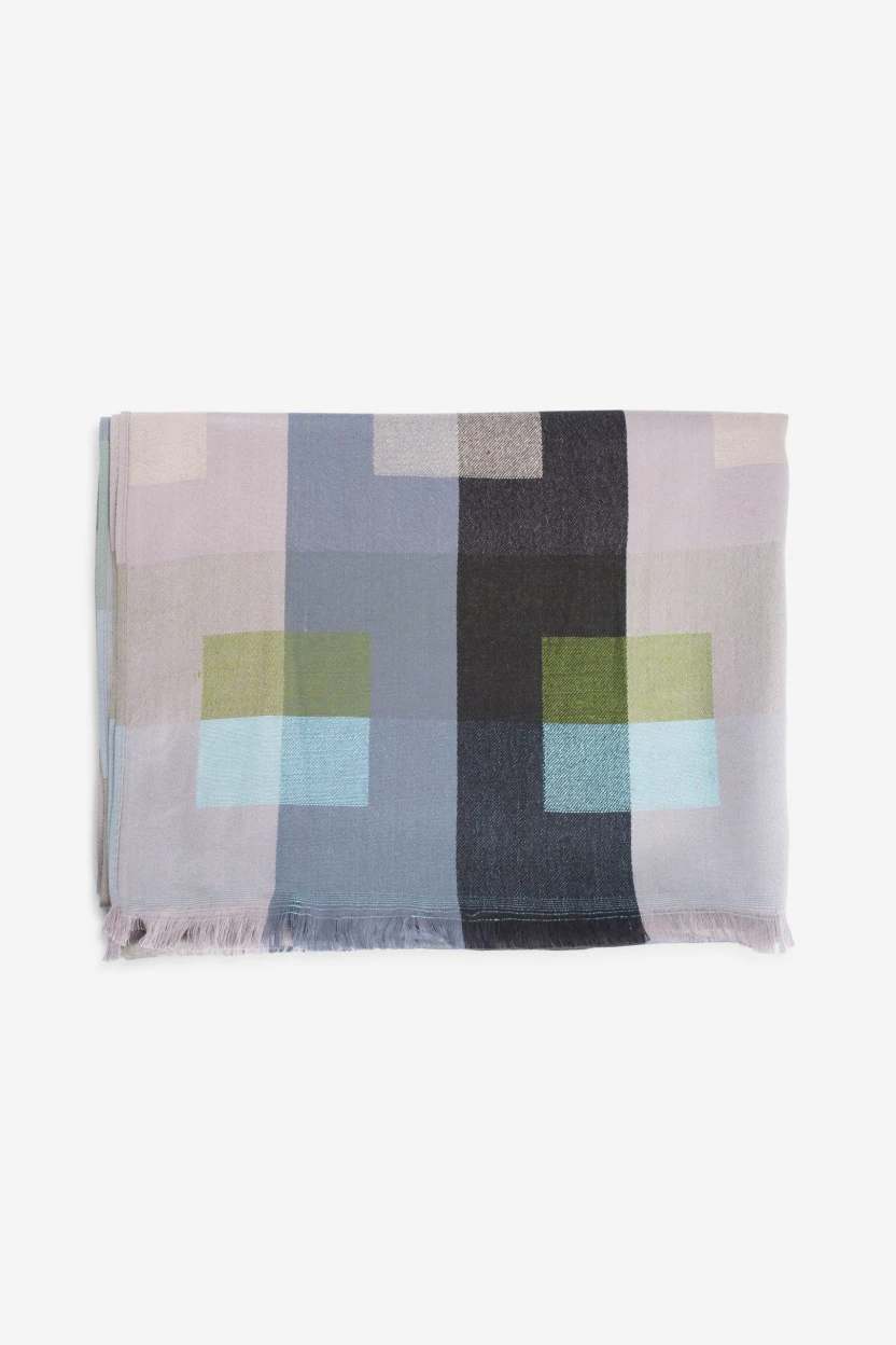 Eșarfa Cleo se remarcă prin paleta sa multicoloră, atent aleasă pentru a crea un efect vizual armonios și atractiv. Nuanțele se combină elegant, oferind posibilitatea de a purta eșarfa cu diverse culori de paltoane, jachete sau pulovere. Designul său modern și creativ permite exprimarea personalității prin accesoriile alese, transformând eșarfa într-un punct focal al ținutei.