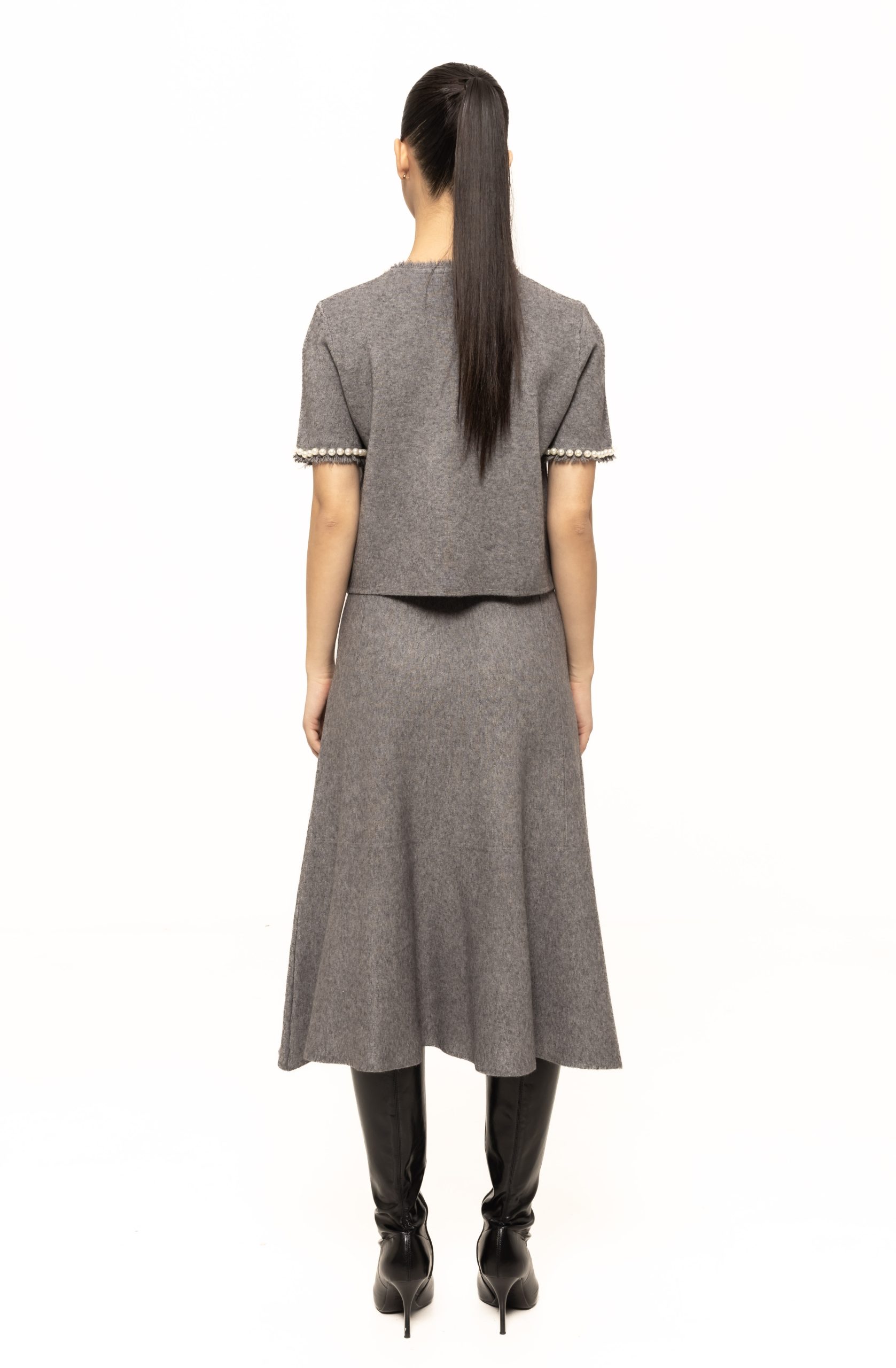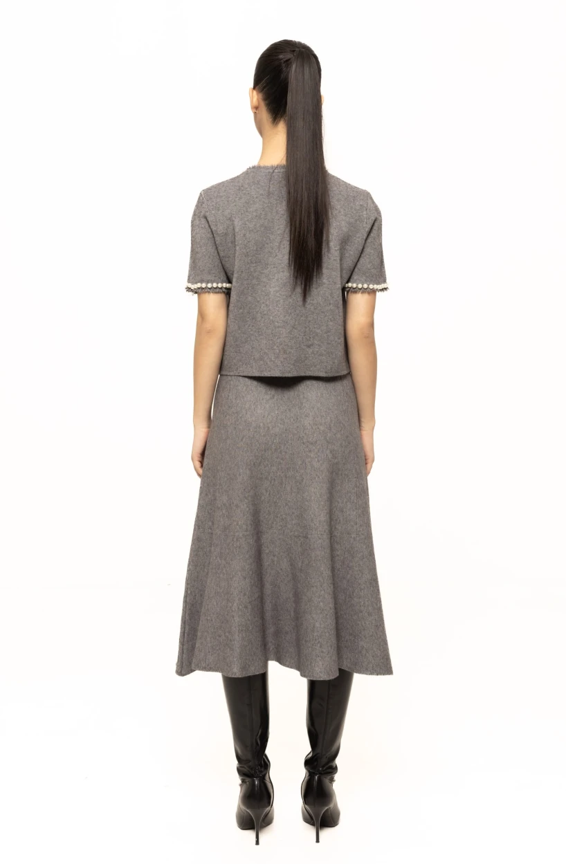 Realizată dintr-un material tricotat de calitate superioară, fusta Marina oferă confort termic, flexibilitate și libertate de mișcare. Textura moale la atingere asigură o senzație plăcută pe parcursul întregii zile, iar elasticitatea materialului permite adaptarea fustei la diferite tipuri de siluetă, păstrând în același timp forma și aspectul elegant.