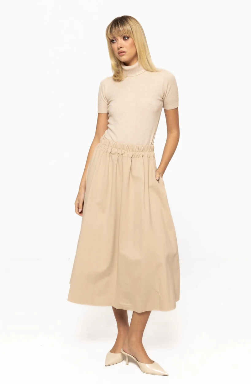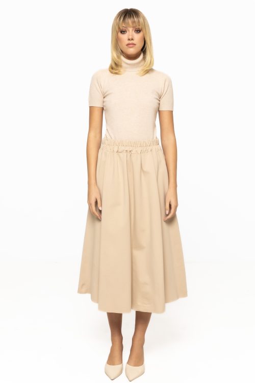 ✔️ Look de seară: asortează fusta Octavia cu o bluză din mătase sau satin, accesorii statement și pantofi eleganți, creând un outfit rafinat și feminin.