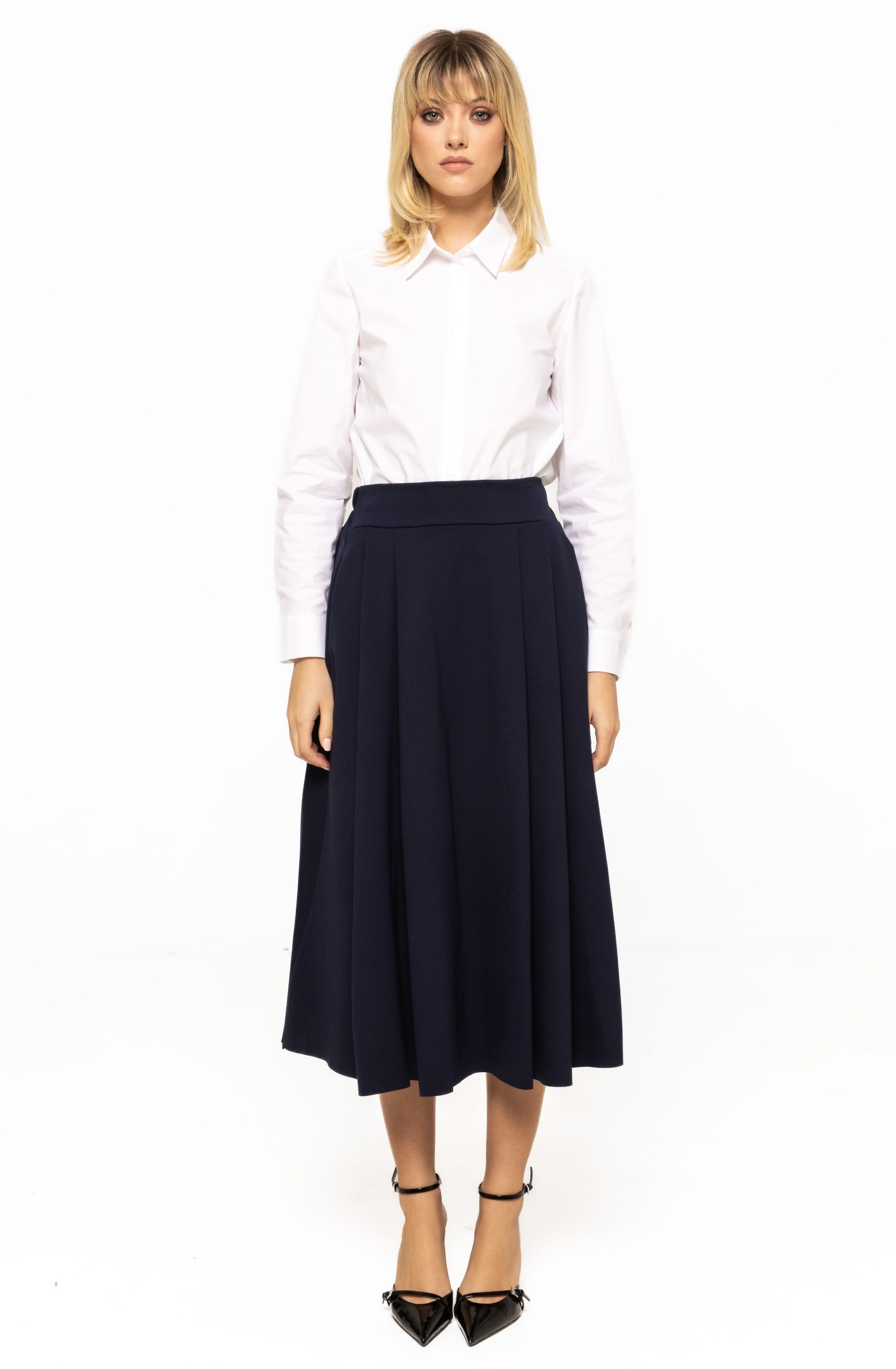 ✔️ Look office: combină fusta Octavia cu o cămașă albă, sacou structurat și pantofi cu toc pentru un outfit profesional și sofisticat.