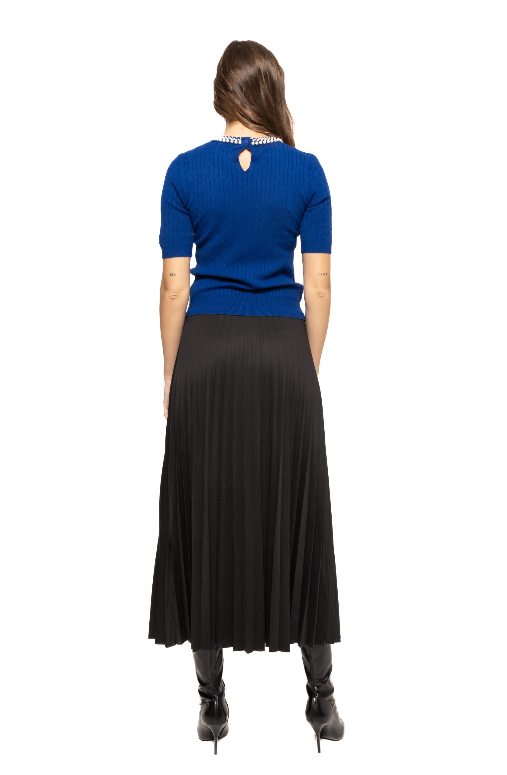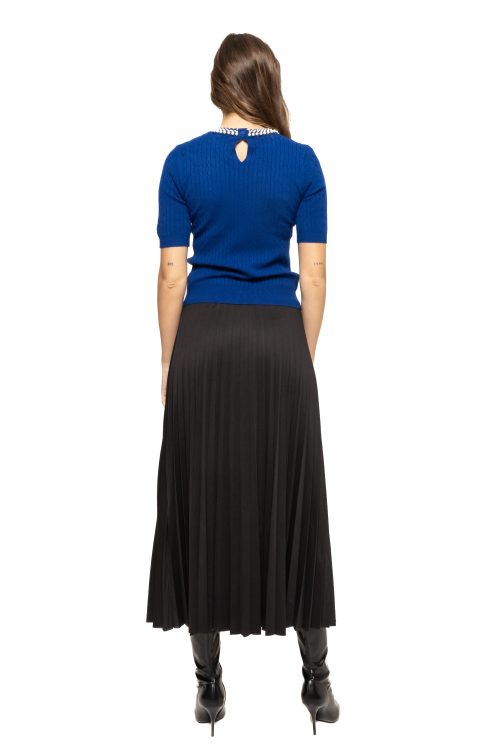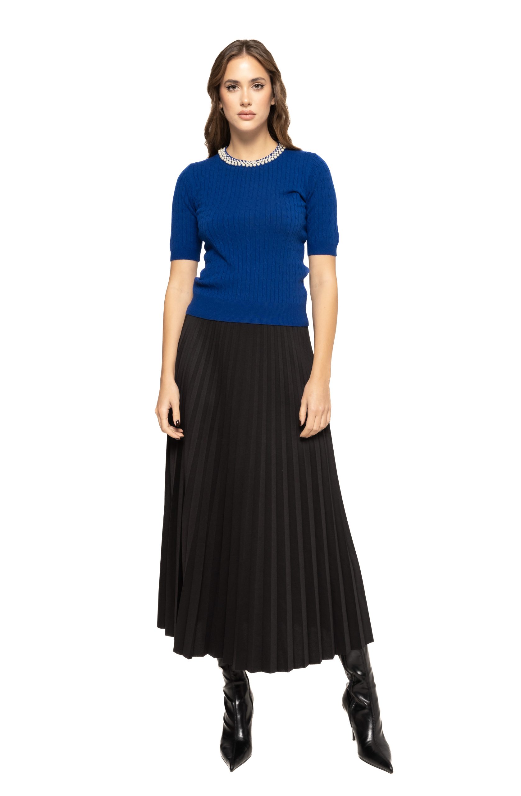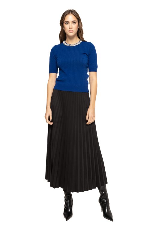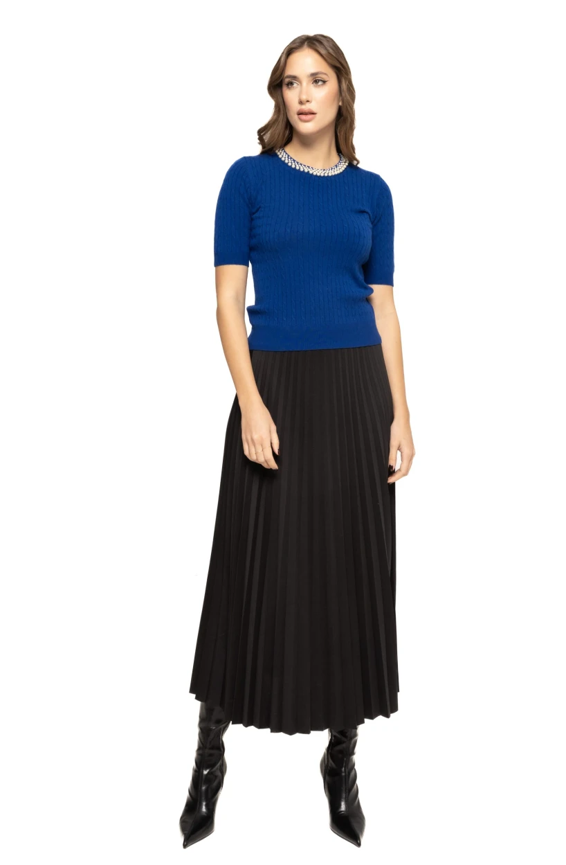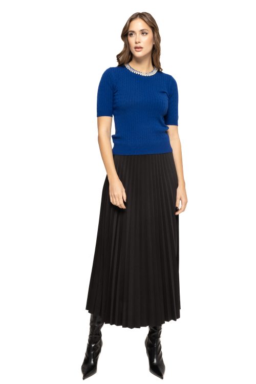 Fusta cu pliuri Raluca este extrem de versatilă și poate fi purtată în numeroase combinații: