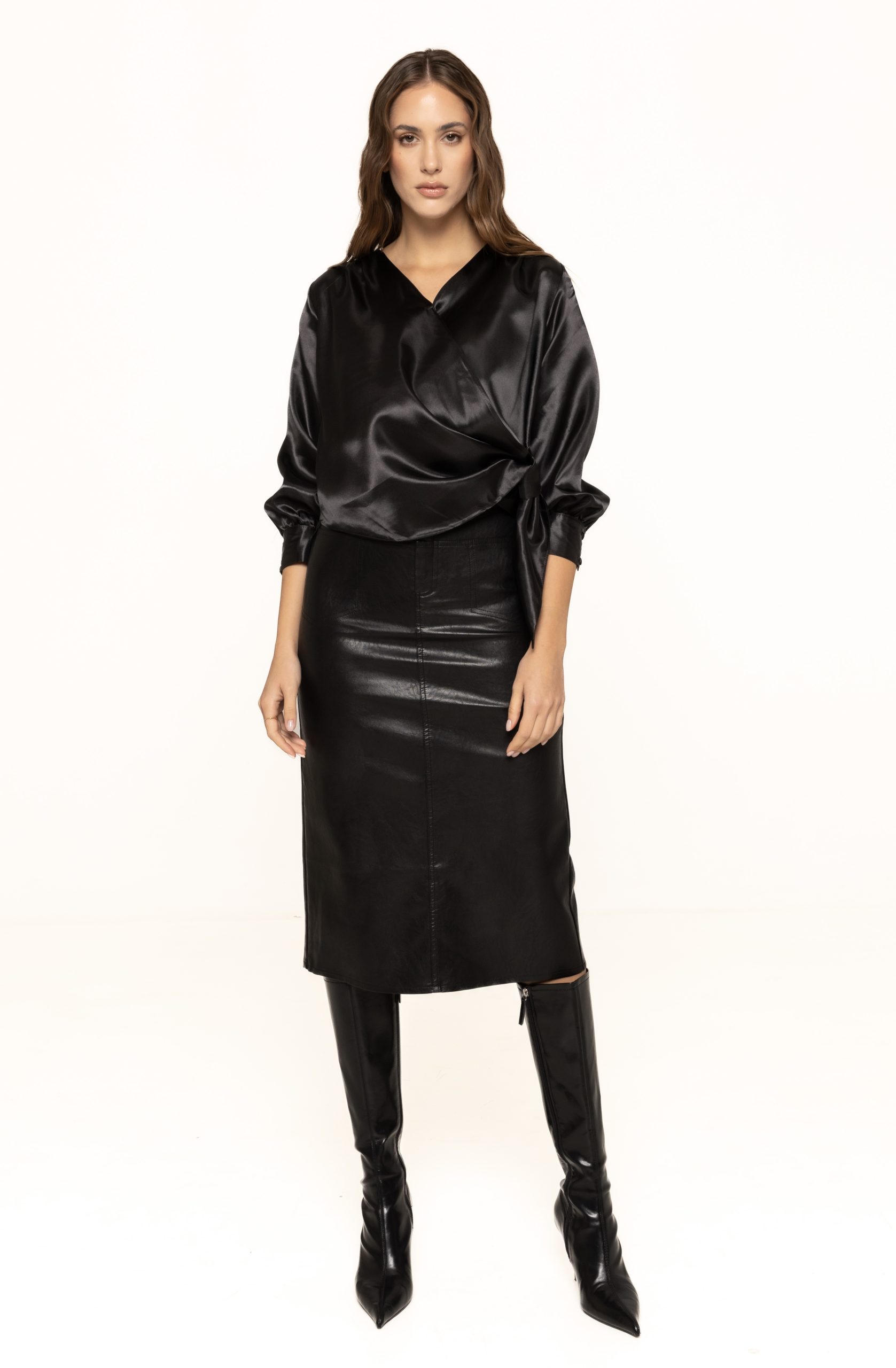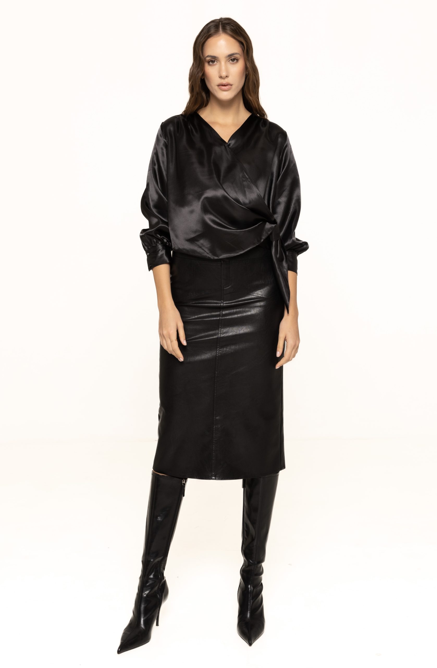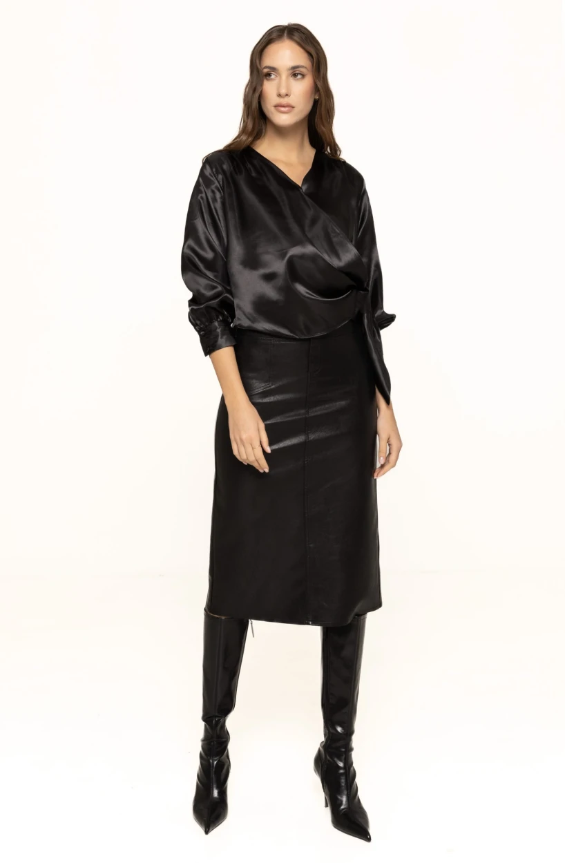 Fusta din piele ecologică Alexia este perfectă pentru birou, datorită aspectului ei structurat și profesionist. Poate fi combinată cu o cămașă clasică, un sacou sau un cardigan elegant. În același timp, este o alegere potrivită pentru ținute casual-chic, purtată cu un tricou simplu, o bluză lejeră sau o cămașă oversized. Pentru un look de seară, fusta Alexia poate fi asortată cu un top strălucitor sau cu o bluză din dantelă, rezultând o ținută modernă și atrăgătoare.