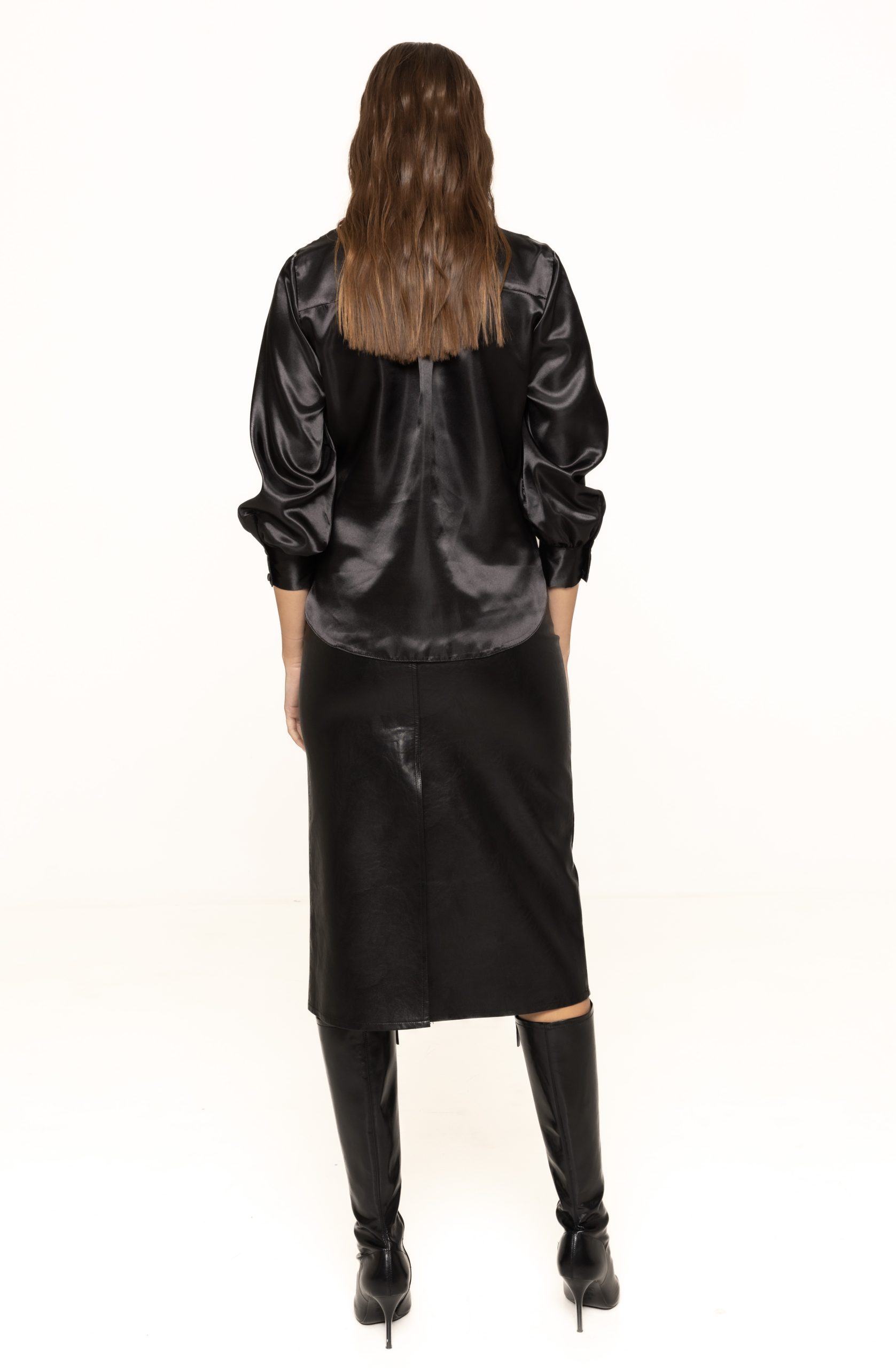 Materialul din piele ecologică folosit la fusta Alexia este rezistent, flexibil și ușor de curățat, ceea ce o face o alegere excelentă pentru femeile active. Fusta își păstrează forma, nu se întinde inutil și nu își pierde strălucirea, menținând un aspect impecabil chiar și după purtări repetate. Textura netedă a materialului conferă un look sofisticat, iar finisajele atent realizate subliniază calitatea piesei.