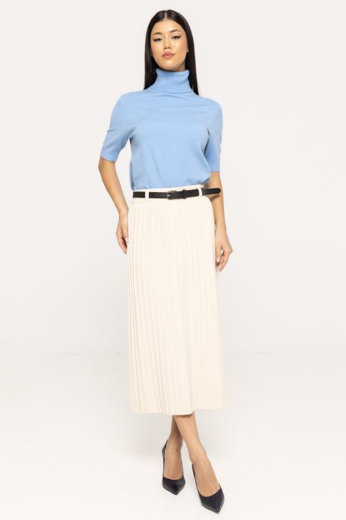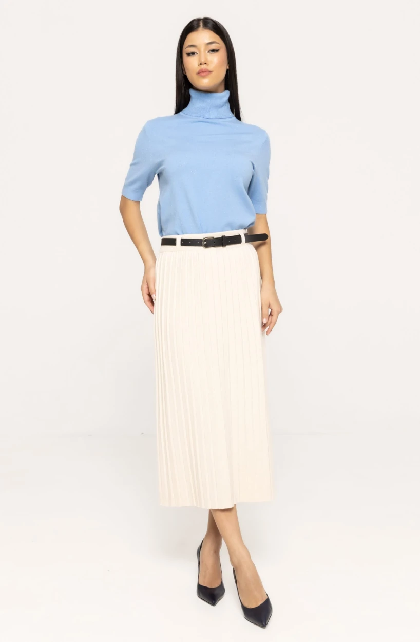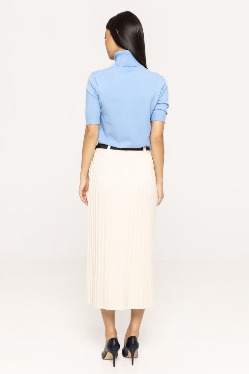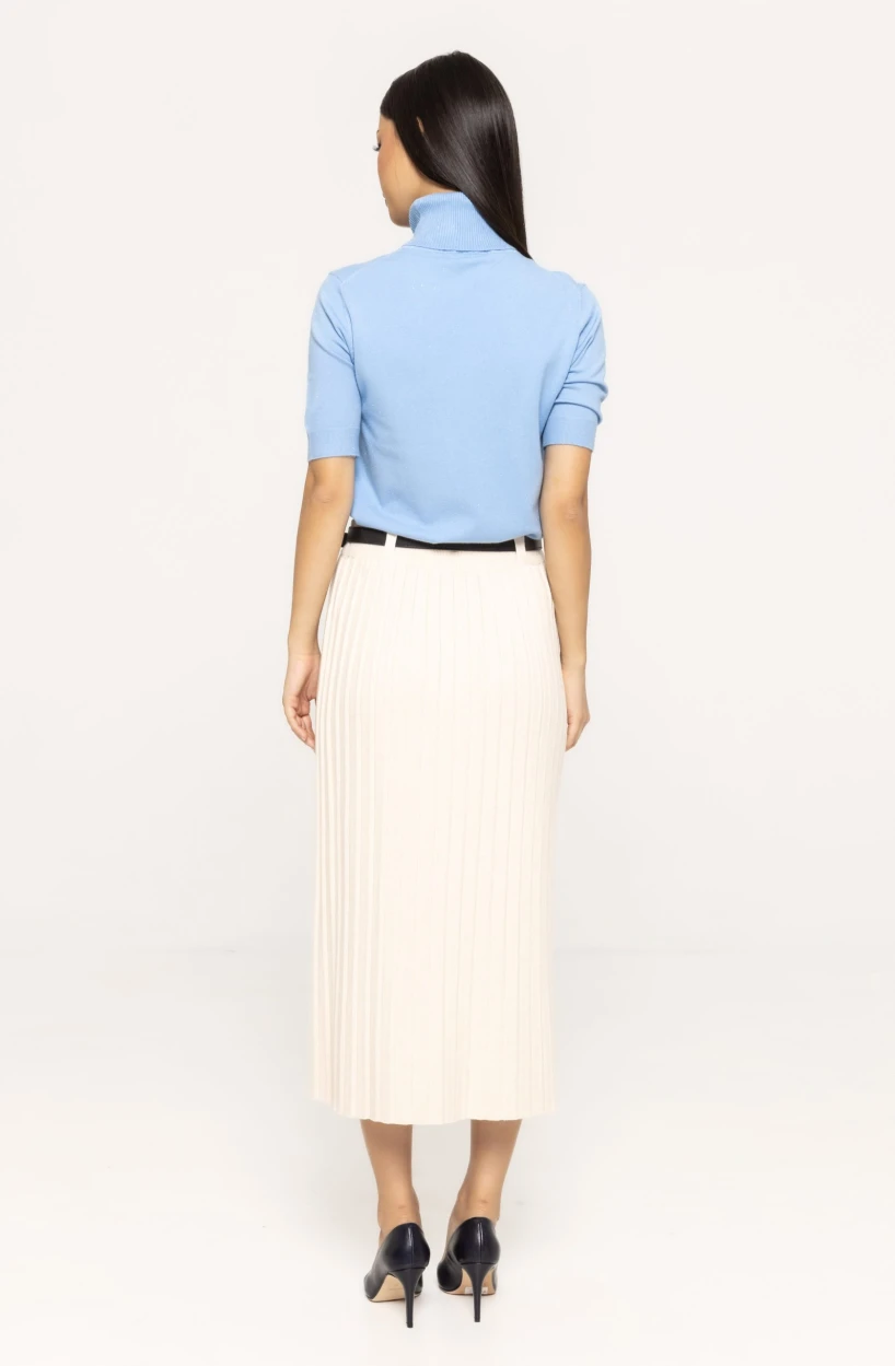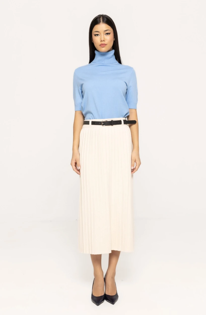 Culoarea neutră a fustei Roxana permite combinarea ei cu aproape orice piesă vestimentară, făcând-o extrem de ușor de integrat în garderobă.