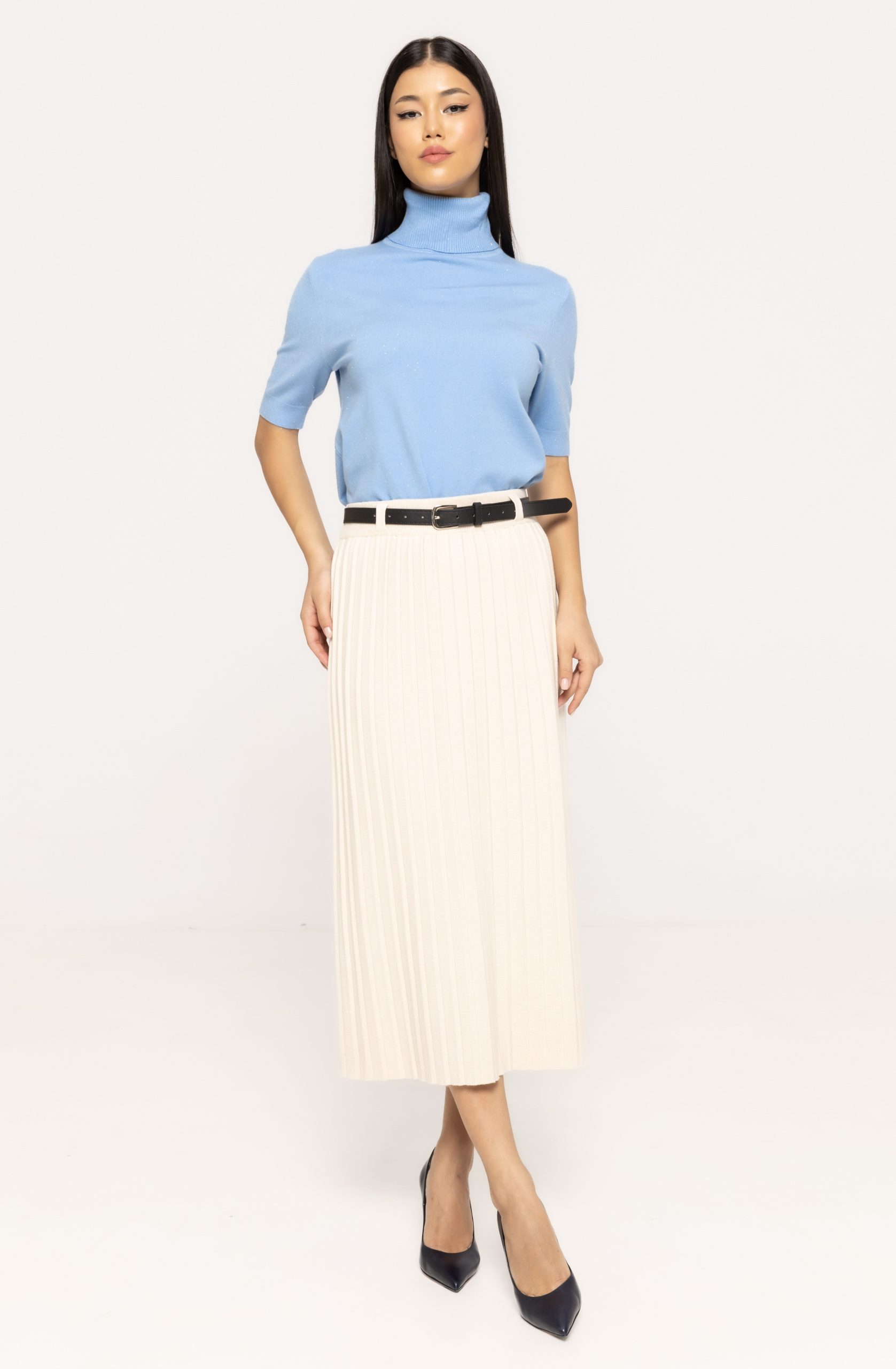 Culoarea neutră a fustei Roxana permite combinarea ei cu aproape orice piesă vestimentară, făcând-o extrem de ușor de integrat în garderobă.