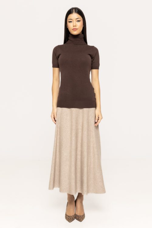 Detaliile sunt cele care transformă această fustă într-o piesă specială. Marginea elastică din talie oferă o fixare lejeră, dar sigură, iar textura tricotului adaugă volum subtil și fluiditate. Fusta se mulează ușor pe siluetă, accentuând feminitatea într-un mod natural. Datorită finisajului de calitate, își păstrează forma chiar și după spălări repetate, devenind o piesă de bază în garderoba ta de sezon.