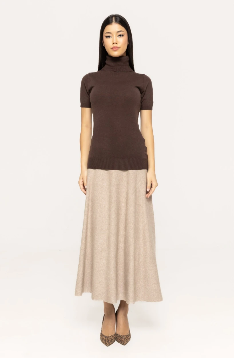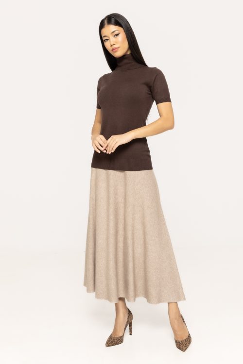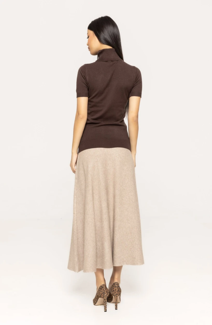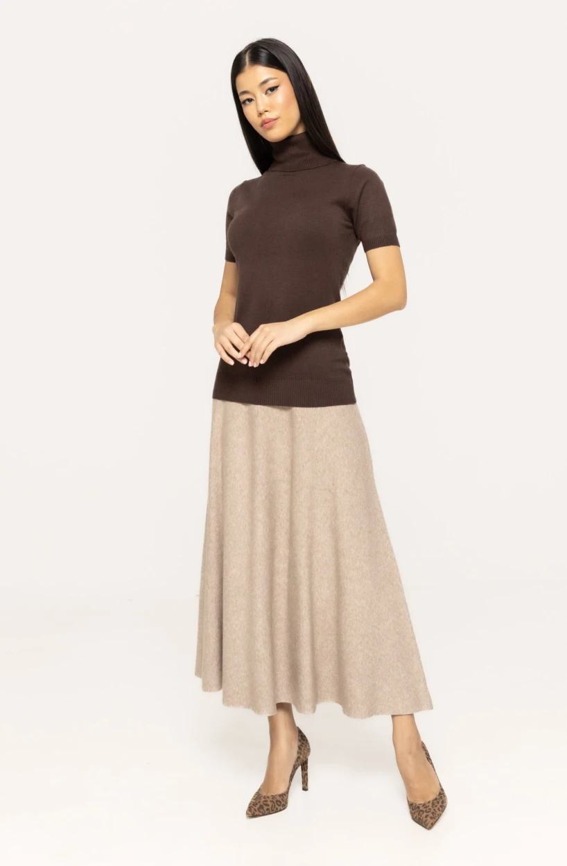 Fusta lejeră din tricot Adina este o piesă versatilă, care se potrivește cu o mulțime de stiluri: