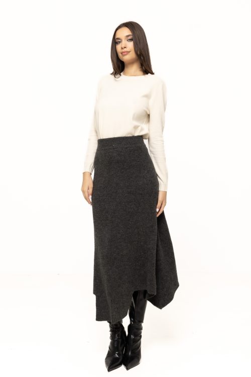 Un alt avantaj al fustei lungi asimetrice Edith este versatilitatea sa în cadrul ținutelor. Pentru un look elegant de seară, poate fi combinată cu o bluză satinatată sau un top din mătase și pantofi cu toc, rezultând o apariție sofisticată și modernă. Într-o variantă casual-chic, fusta poate fi purtată cu tricouri, pulovere fine sau bluze oversized și bocanci sau pantofi sport, obținând un contrast stilistic interesant, dar în armonie perfectă. Datorită designului său distinctiv, fusta Edith se adaptează ușor la stilul personal, fiind o piesă de impact în orice garderobă.