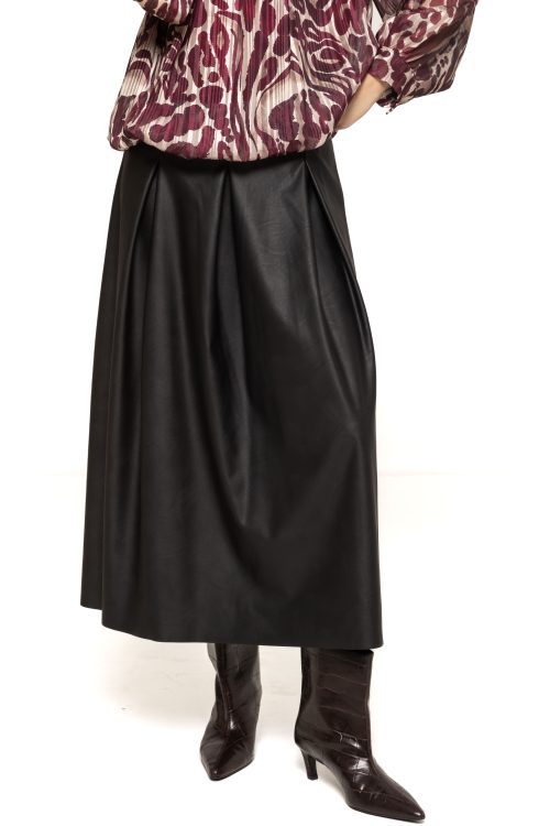 Fusta Kate este concepută pentru a evidenția frumusețea naturală a siluetei. Pensele plasate strategic pe față și spate conturează formele feminine, oferind un efect vizual de subțiere și alungire. Croiala lungă, fluidă, conferă un aer sofisticat și elegant, în timp ce talia bine definită completează armonios look-ul. Această piesă vestimentară este gândită pentru femeile care doresc să îmbine feminitatea cu confortul și libertatea de mișcare.