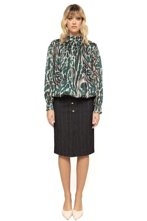 Fusta mulată cu buzunare Hilda este o piesă extrem de versatilă, ușor de adaptat oricărui context vestimentar. Poate fi purtată cu o cămașă elegantă și pantofi cu toc pentru o ținută office impecabilă sau cu un tricou basic și pantofi sport pentru un look casual modern. În sezonul rece, se pot adăuga dresuri groase, cizme și un palton lung pentru o apariție sofisticată.
