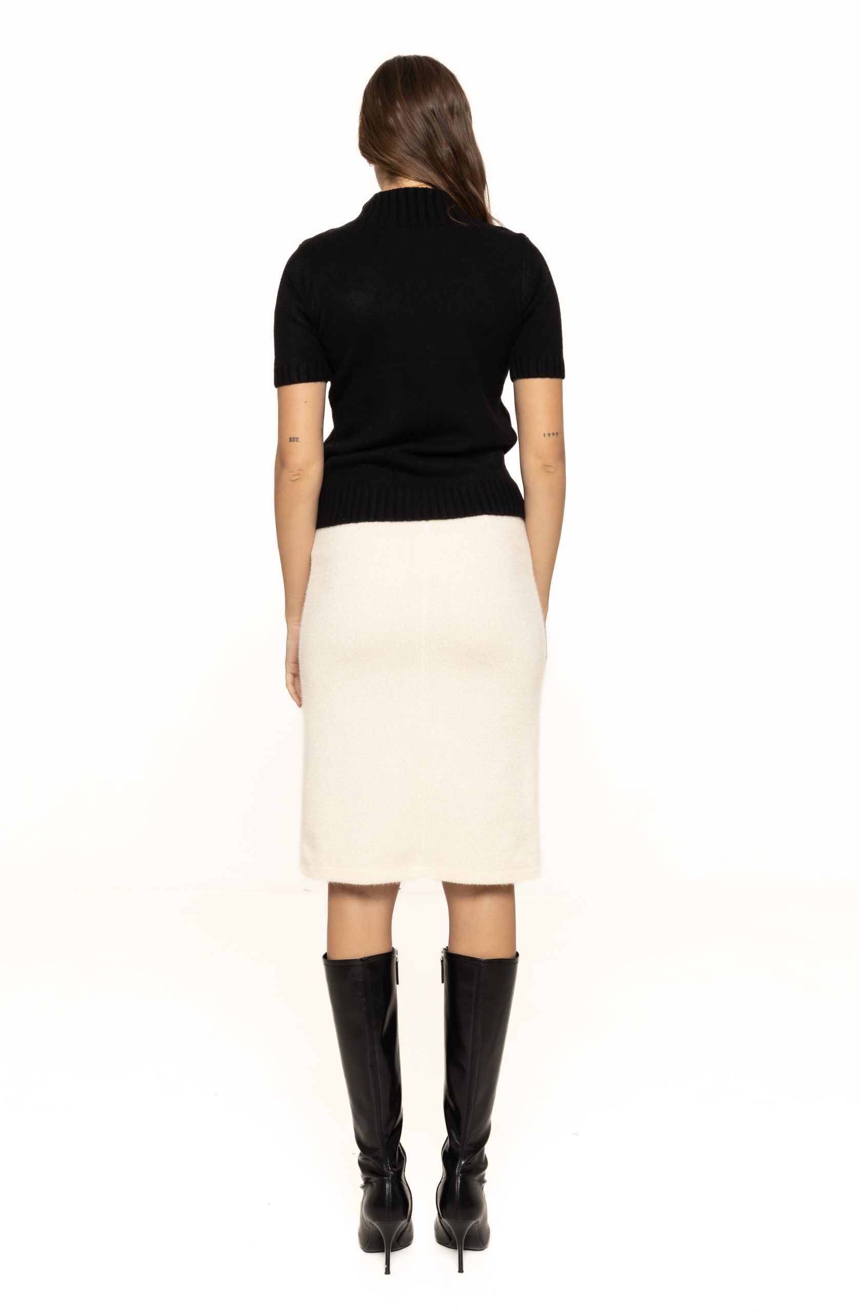 Fusta Alice este confecționată dintr-un material de calitate superioară, care se mulează pe corp și oferă confort pe tot parcursul zilei. Textura sa fină și elastică permite libertate de mișcare, păstrând în același timp o linie impecabilă. Este tipul de fustă care combină feminitatea cu stilul modern, fiind o piesă versatilă și indispensabilă în garderoba unei femei.