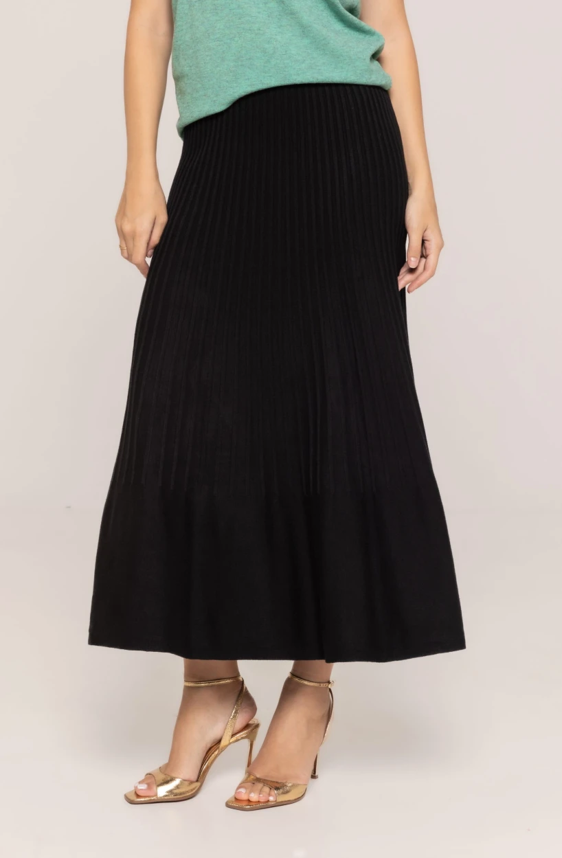 Această fustă este, de asemenea, o opțiune excelentă pentru garderoba profesională. Lungimea midi și croiala sofisticată o fac potrivită pentru mediul office, iar pliurile conferă un plus de eleganță subtilă. Poate fi combinată cu sacouri, bluze cu mâneci lungi sau pulovere fine, creând ținute elegante, moderne și confortabile pentru întreaga zi de muncă.