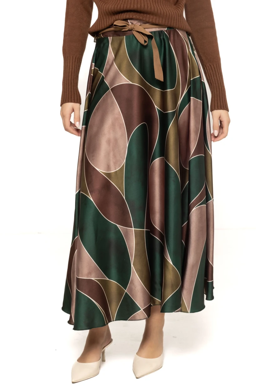 Fustă satinată cu imprimeu Betty – eleganță și stil în fiecare detaliu