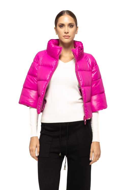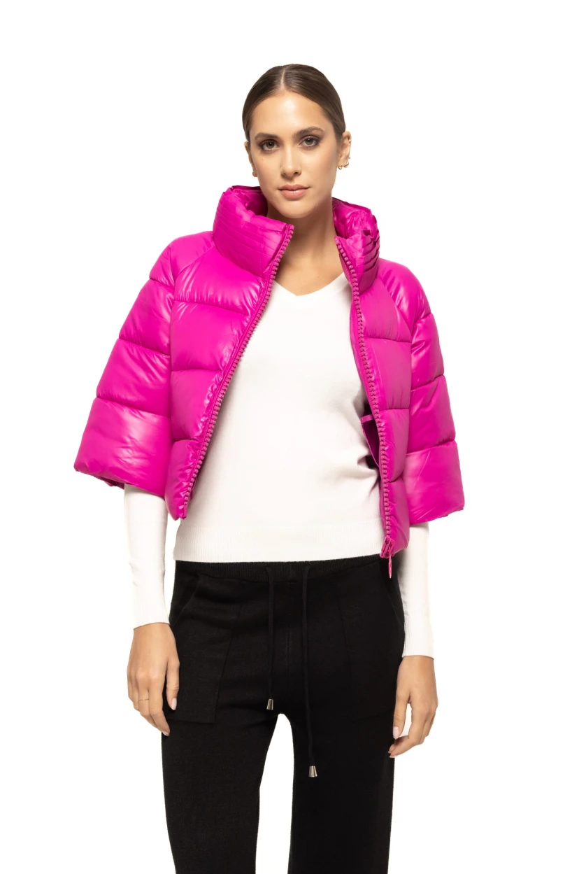 Geaca scurtă cu mâneci trei sferturi Agnes se remarcă prin croiala sa contemporană și versatilă, care adaugă o notă sofisticată ținutelor casual, dar se potrivește perfect și într-un context smart-casual. Designul matlasat, ușor lucios, oferă o textură modernă și o strălucire discretă, care captează atenția instantaneu.