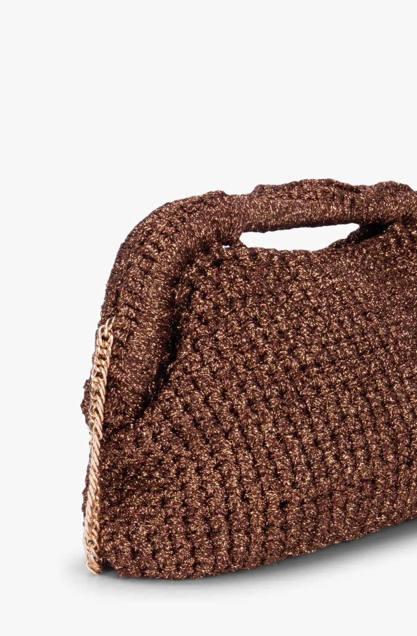 Geanta tip clutch Andrada se remarcă prin echilibrul perfect între confort și stil. Textura croșetată oferă un aspect cald și plăcut, în timp ce lanțul metalic adaugă un plus de eleganță. Finisajele sunt atent realizate, contribuind la durabilitatea produsului și la aspectul său premium.