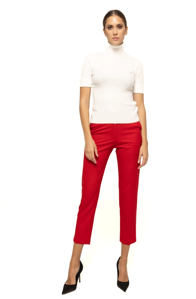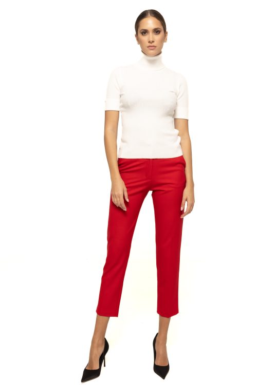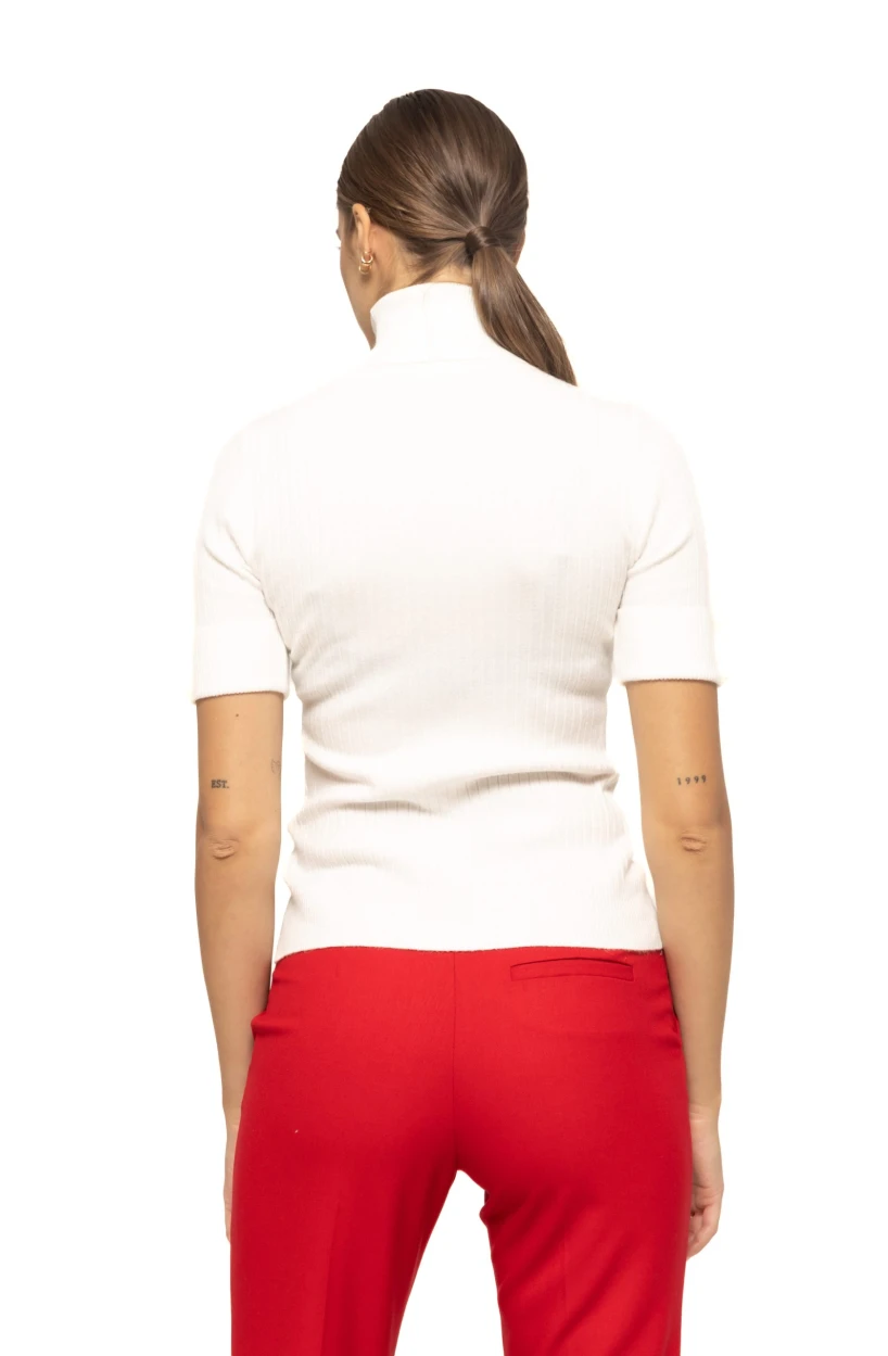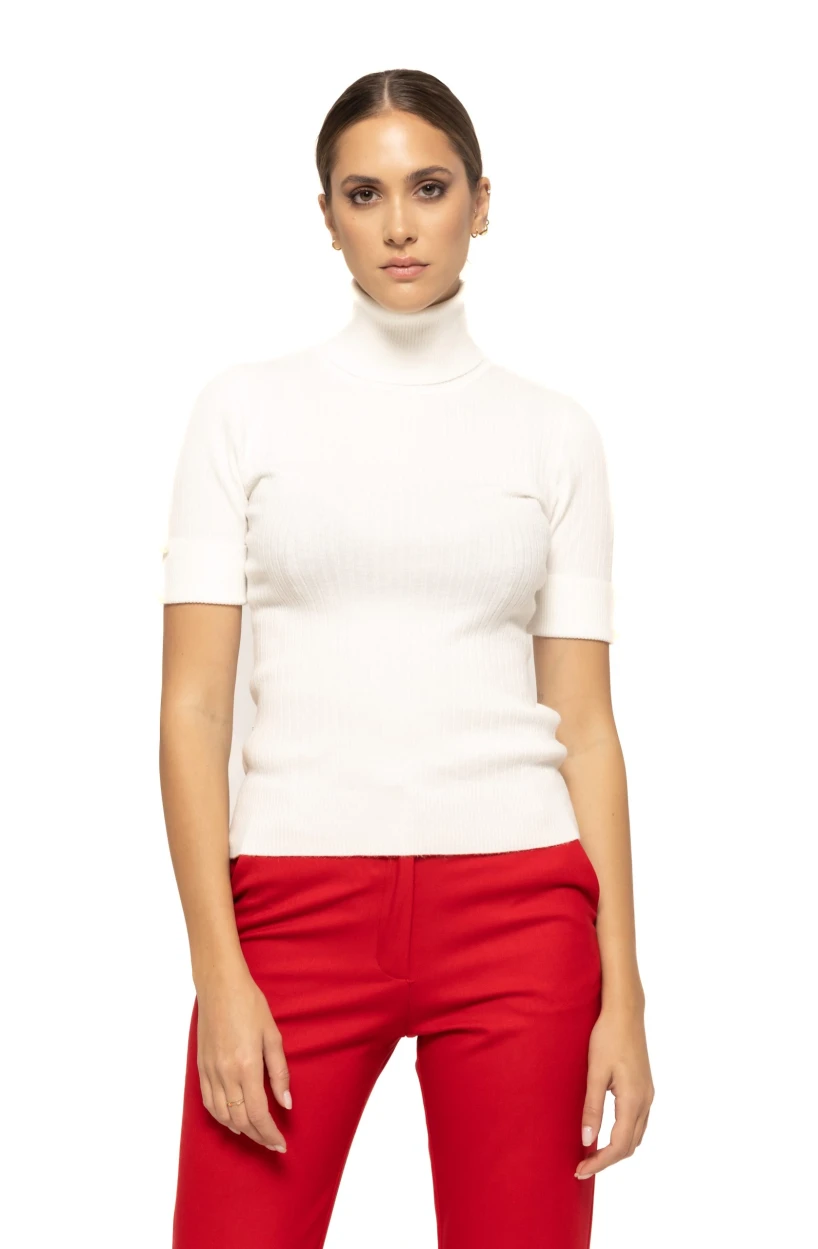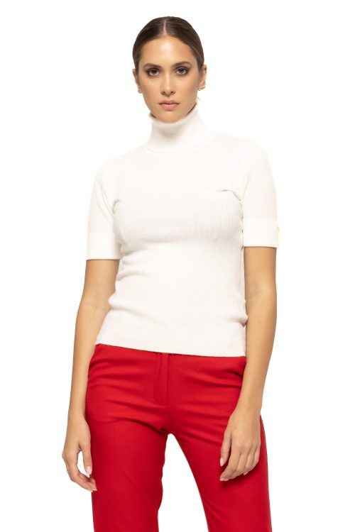 Helanca cu mânecă scurtă Celia se remarcă prin croiala sa simplă și elegantă, ce urmează linia corpului într-un mod natural. Gulerul înalt, specific helancii, conturează frumos zona gâtului, adăugând o notă de rafinament și distincție. Mânecile scurte îi conferă un aer modern și o fac potrivită pentru o varietate de contexte – de la o zi la birou până la o ieșire relaxată în oraș.