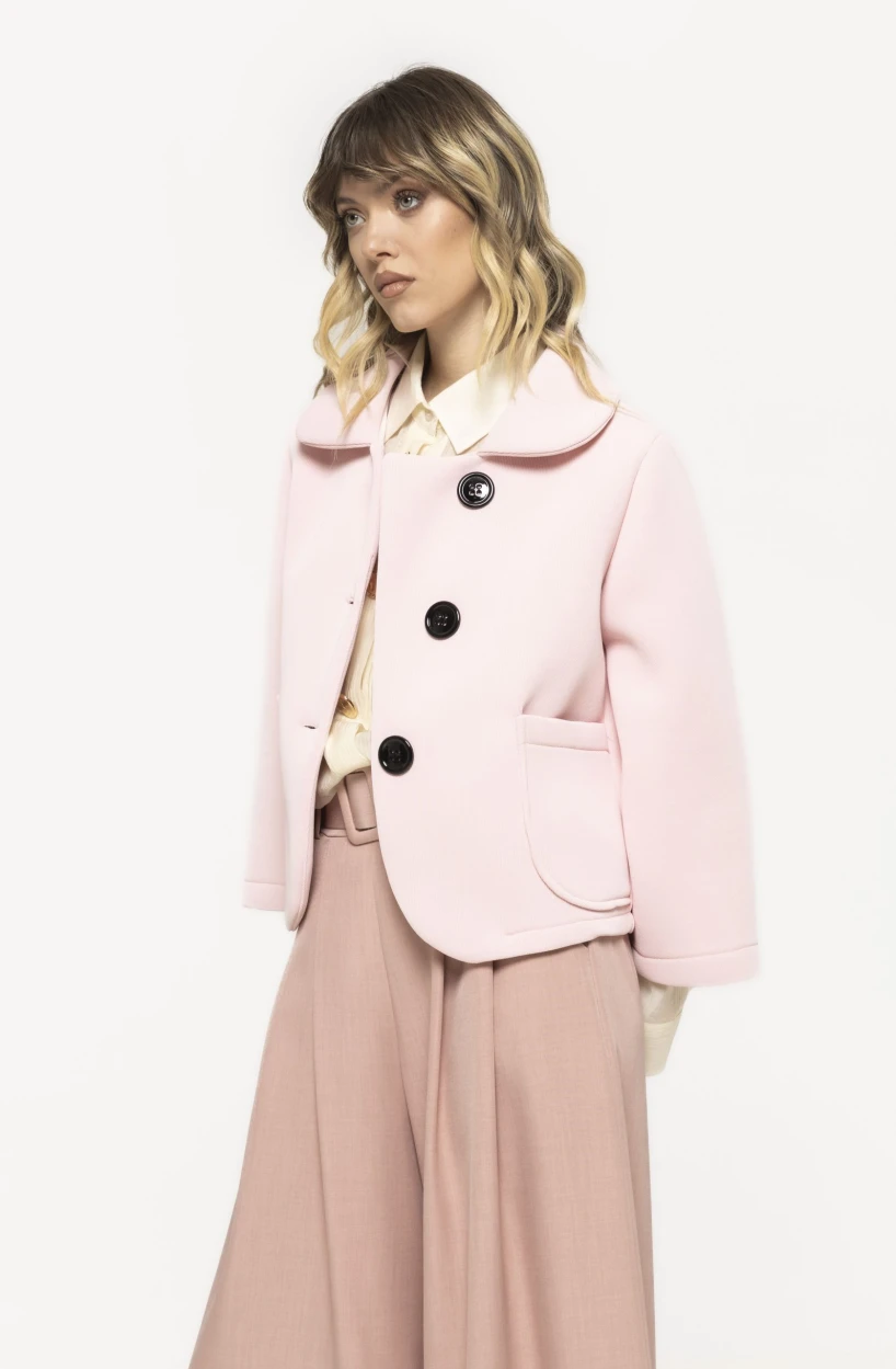 Jacheta Rania este realizată dintr-un material de calitate, plăcut la atingere și rezistent în timp. Textura oferă un echilibru perfect între structură și flexibilitate, astfel încât piesa să își păstreze forma și eleganța.