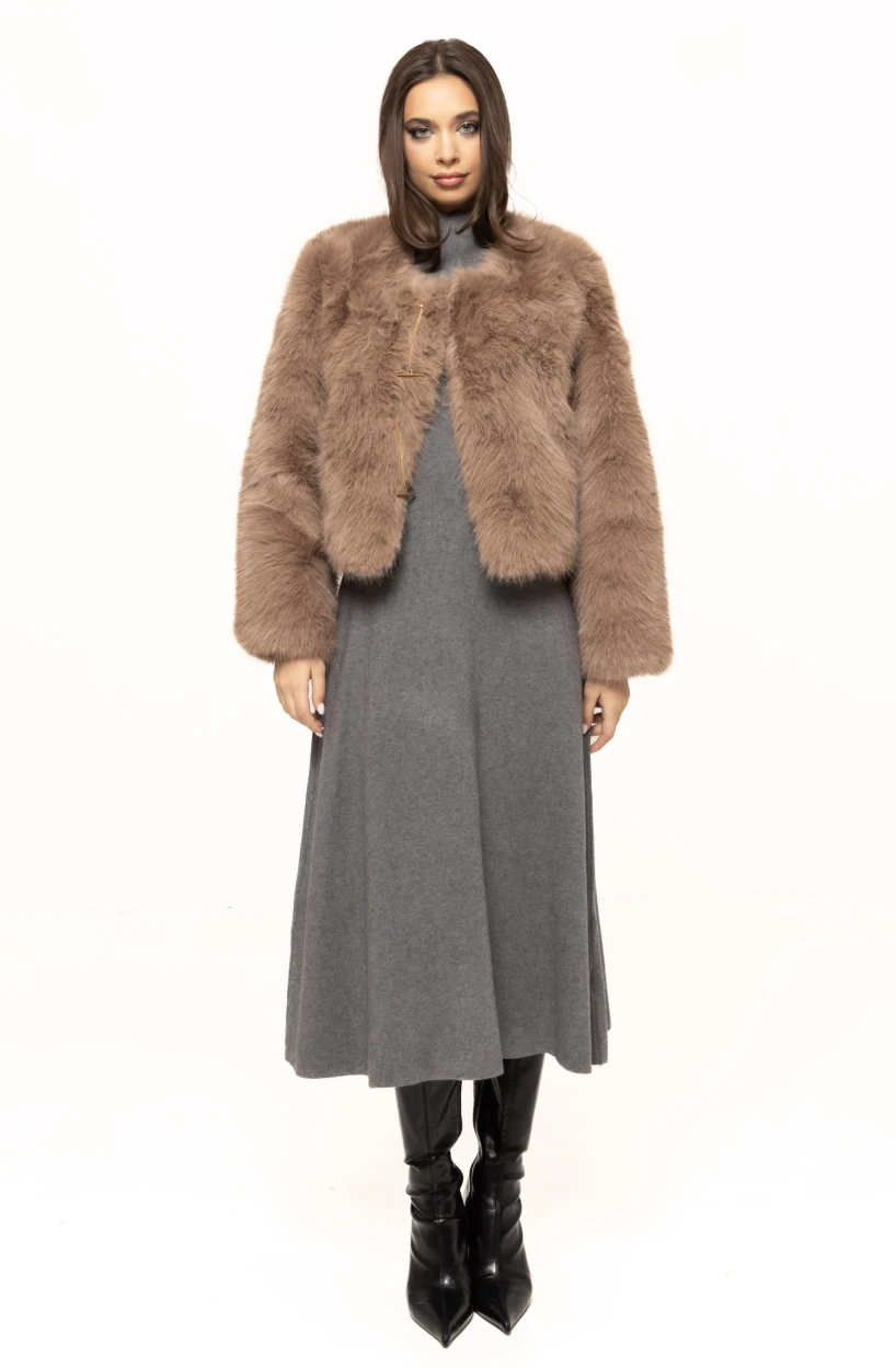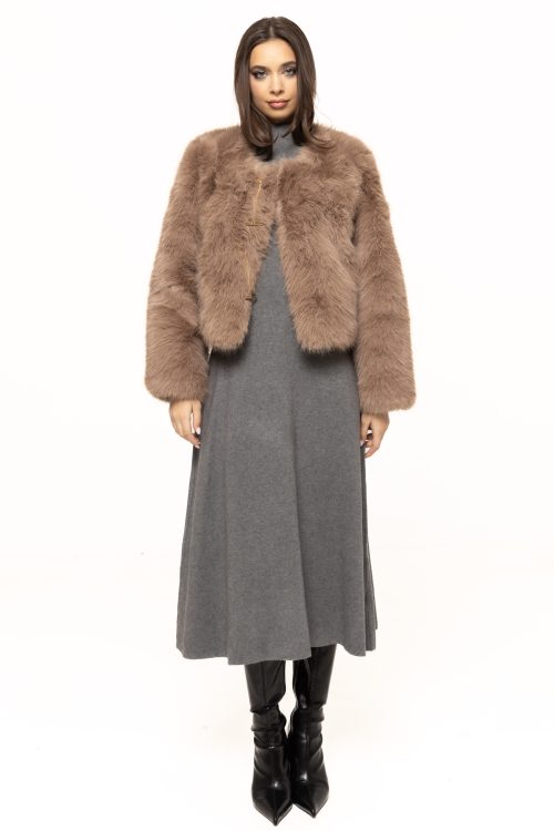 Jacheta scurtă din blană artificială Bianca este piesa statement care aduce un plus de rafinament, căldură și stil în orice garderobă de sezon. Cu un design modern și o textură pufoasă, extrem de plăcută la atingere, jacheta Bianca reușește să îmbine confortul cu eleganța într-un mod ideal. Este perfectă pentru femeile care își doresc o apariție sofisticată, dar fără a renunța la comoditate. Versatilă, ușor de purtat și foarte feminină, această jachetă devine rapid piesa centrală din ținutele tale de toamnă și iarnă.