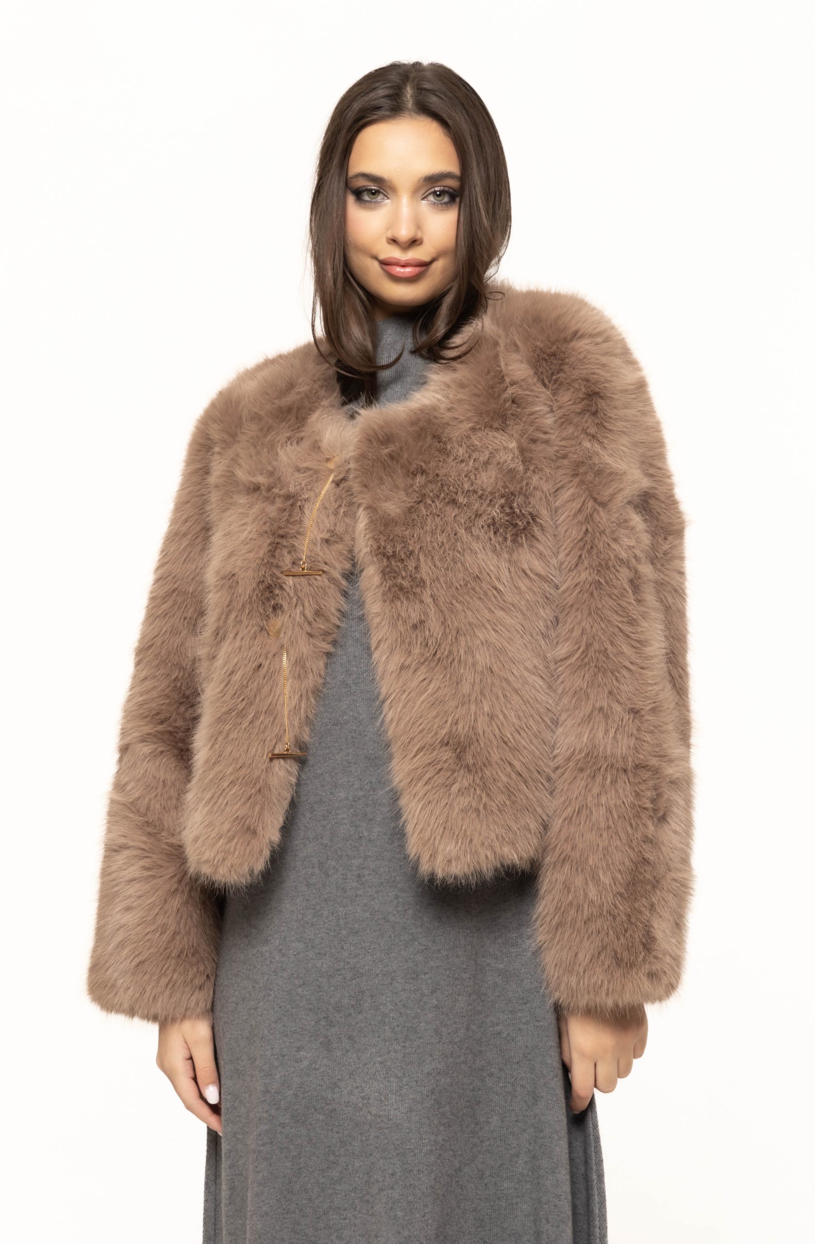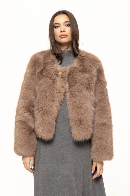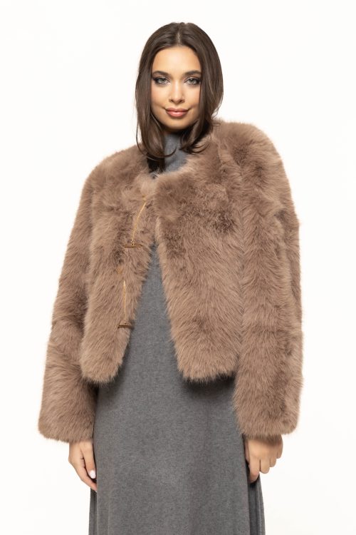 Jacheta Bianca este disponibilă într-o nuanță neutră și versatilă, ușor de integrat în orice paletă vestimentară. Tonurile sale naturale scot în evidență textura blănii artificiale și oferă ținutelor un aspect elegant și rafinat. Această culoare îți permite să o combini atât cu nuanțe clasice – negru, alb, bej, gri – cât și cu culori intense sau imprimeuri. De aceea, jacheta devine o piesă de bază în garderoba ta de sezon, fiind potrivită pentru multiple combinații și stiluri.