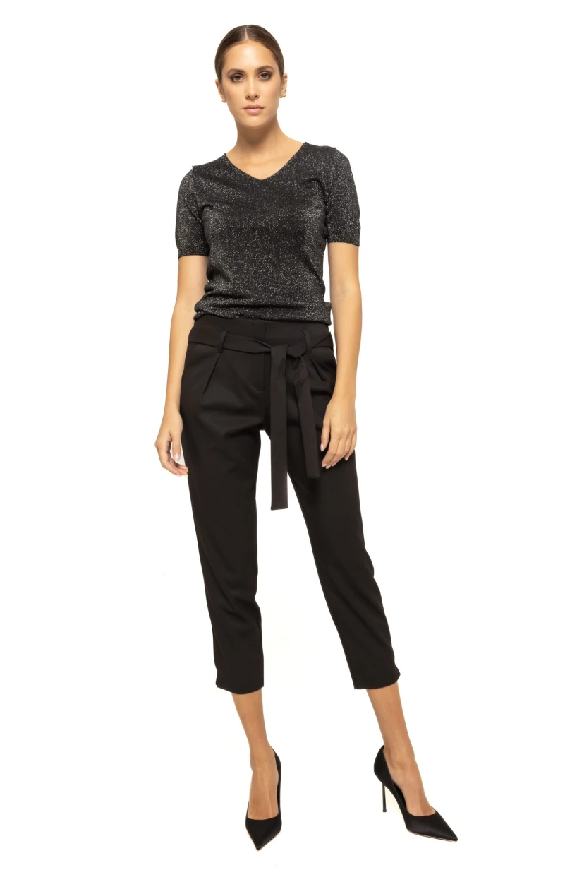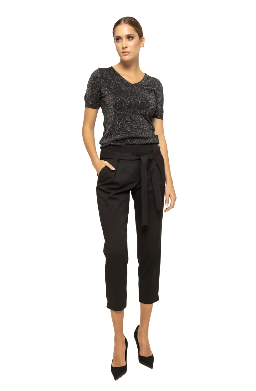 Pantalonii Carla pot fi accesoriați cu ușurință. Curelele subțiri, gențile elegante sau bijuteriile delicate pot evidenția talia și pot completa armonios look-ul, subliniind rafinamentul cordonului și croiala pantalonilor. Această piesă devine astfel centrul outfitului, aducând un plus de personalitate și stil fără a încărca ținuta.
