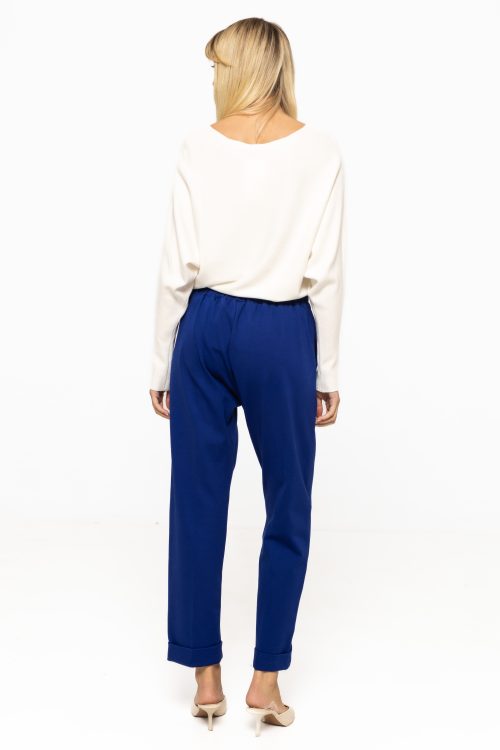 Pantalonii office cu elastic în talie Lucia pot fi purtați atât cu tocuri, pentru un look business elegant, cât și cu pantofi loafers sau balerini, pentru o ținută office casual.