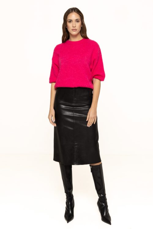 Croiala puloverului Tania este gândită pentru a se potrivi oricărui tip de siluetă. Lejer, dar totuși elegant, acesta face parte din categoria pieselor care avantajează formele corpului fără să adauge volum inutil. Linia ușor relaxată asigură libertate în mișcare și confort, dar menține totodată un aspect bine definit și feminin. Mânecile trei sferturi aduc dinamism modelului și pun în evidență zona încheieturilor, ceea ce permite purtarea brățărilor sau ceasurilor preferate.