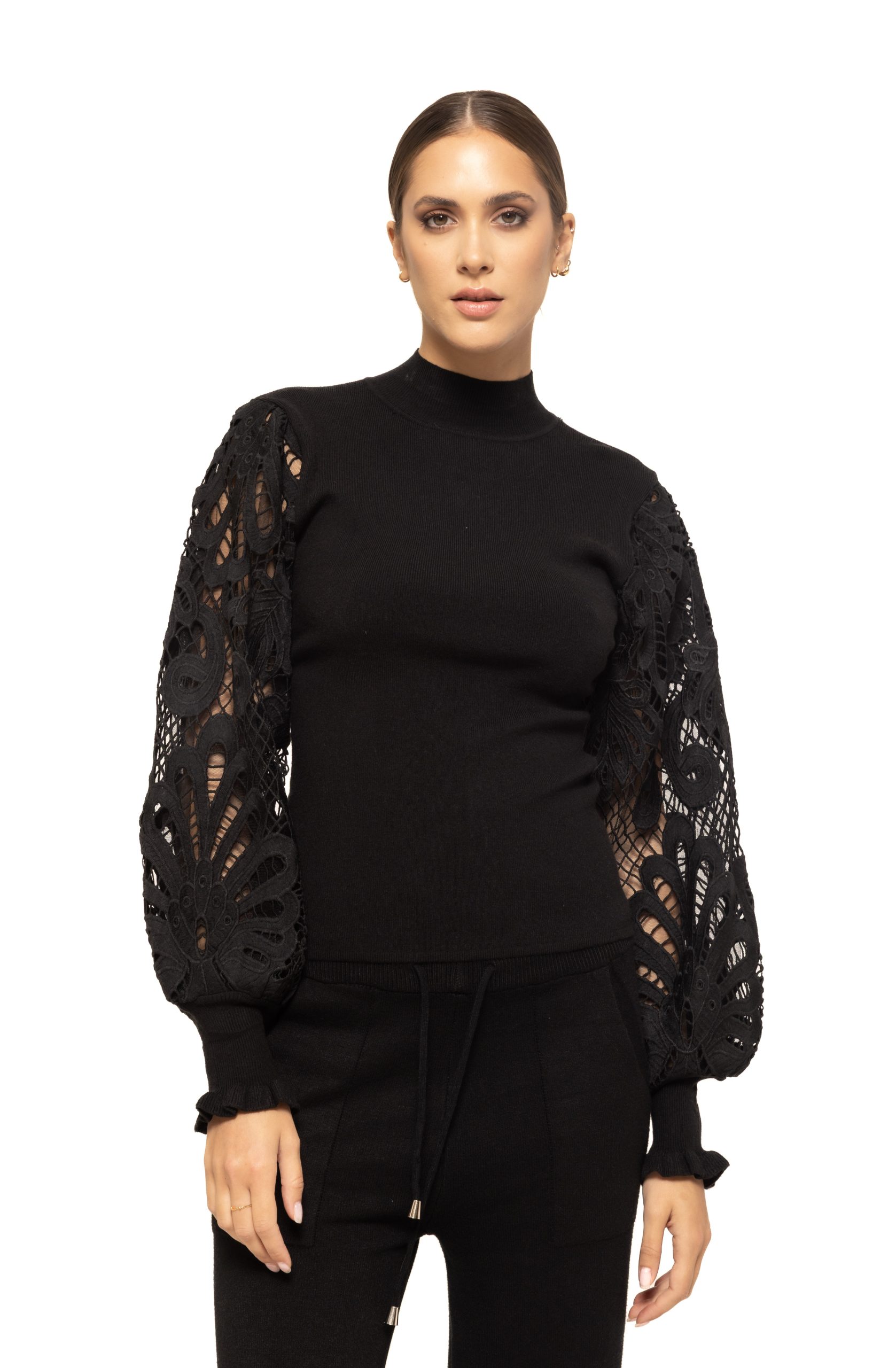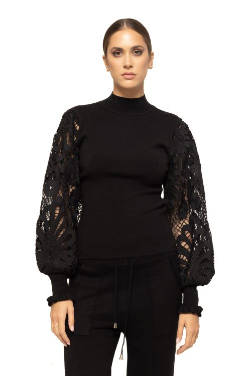Pulover cu model broderie la mâneci Dolly – eleganță și feminitate în fiecare detaliu