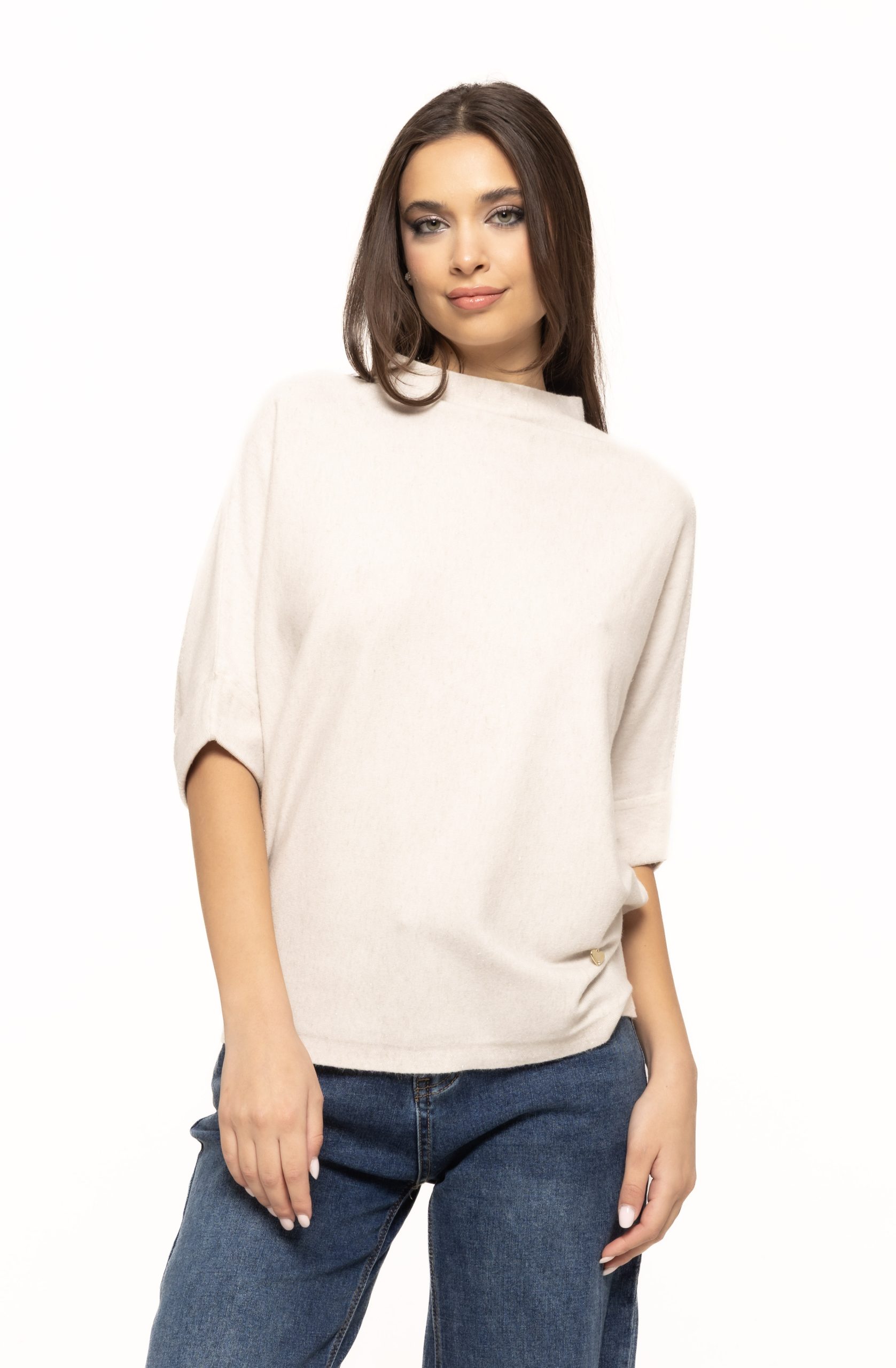 Croiala puloverului cu sclipici Angi este gândită pentru a avantaja silueta. Linia ușor lejeră, dar bine proporționată, permite puloverului să se așeze armonios pe corp, ascunzând subtil zonele mai puțin dorite și evidențiind liniile feminine. Decolteul clasic, fin conturat, adaugă un plus de eleganță și face puloverul potrivit pentru o varietate de accesorii – de la coliere fine la cercei statement.