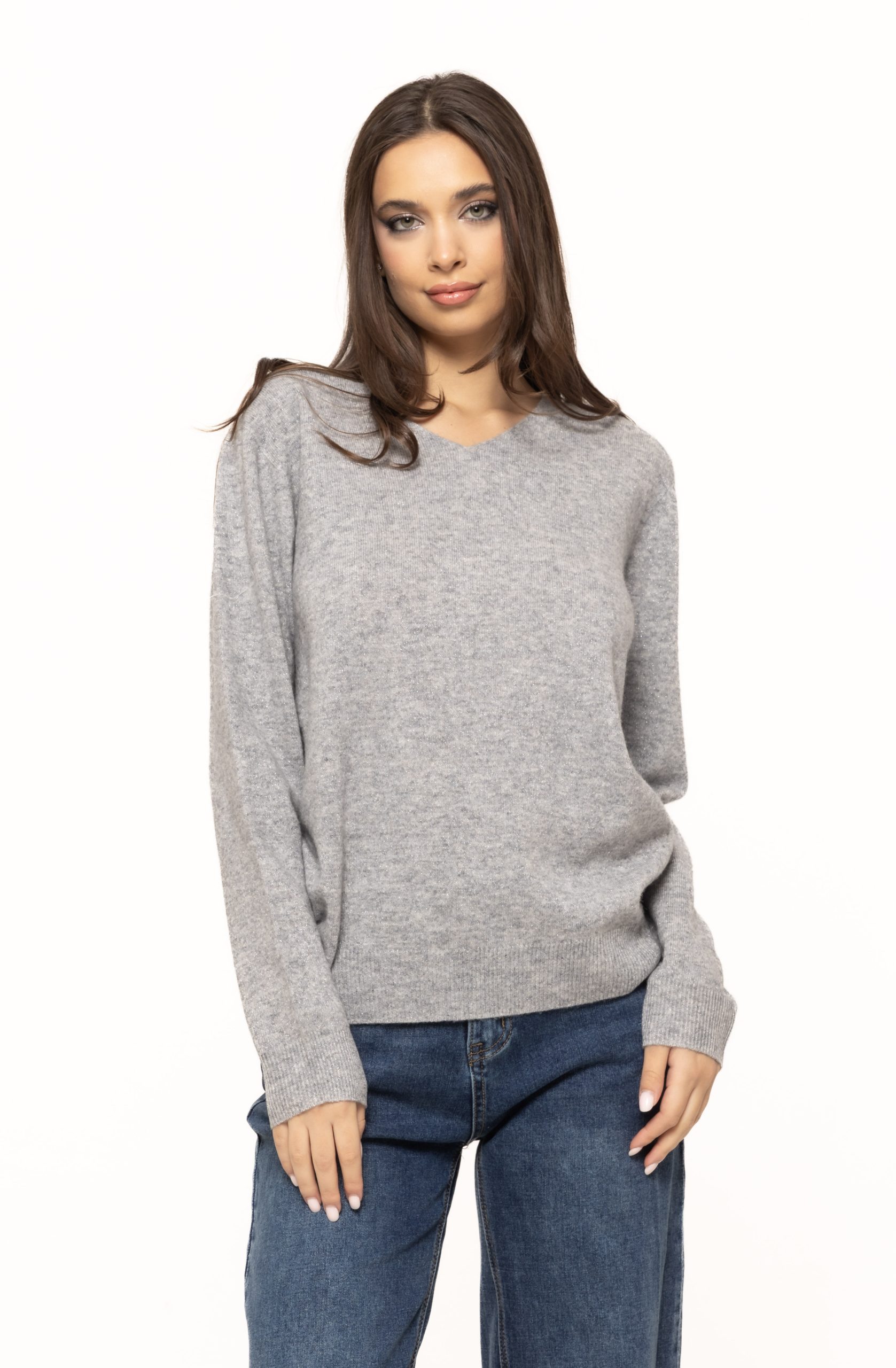 Paleta de culori în care este disponibil puloverul Agnes permite asortări multiple, fie că preferi nuanțele neutre – gri, crem, bej, alb – fie tonuri mai intense, care ies în evidență. Indiferent de culoare, sclipiciul delicat conferă un aspect sofisticat și elegant, perfect pentru femeile care își doresc un pulover diferit, special, dar totuși ușor de purtat.