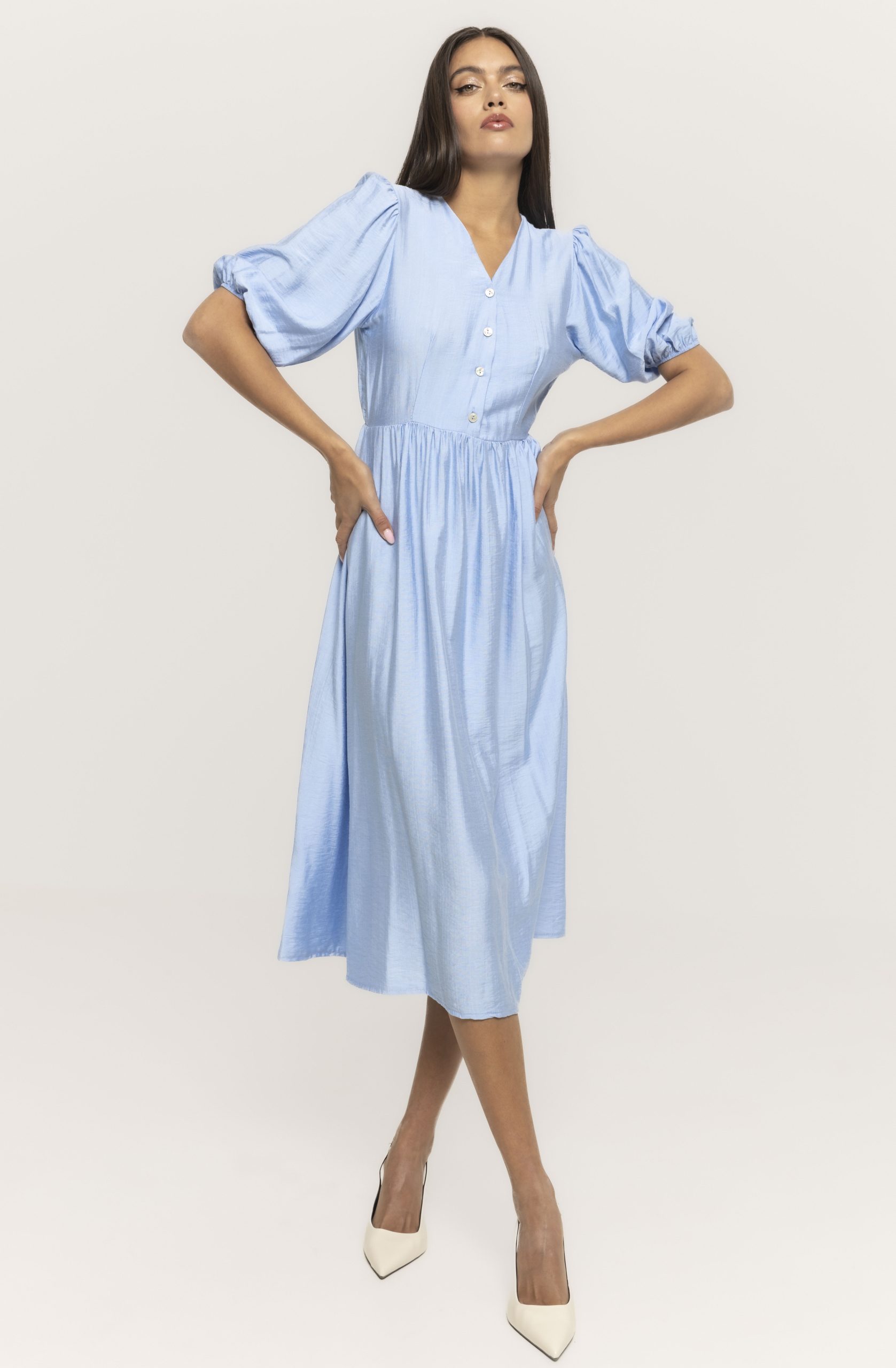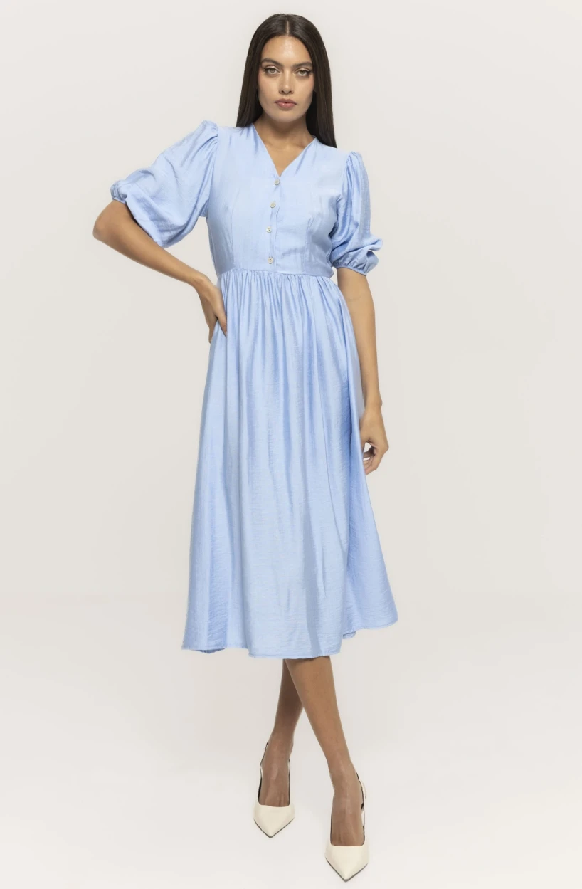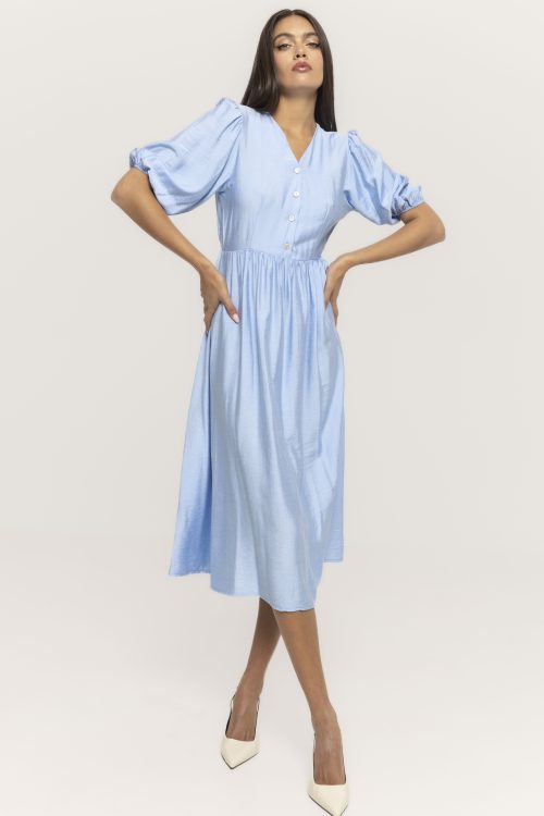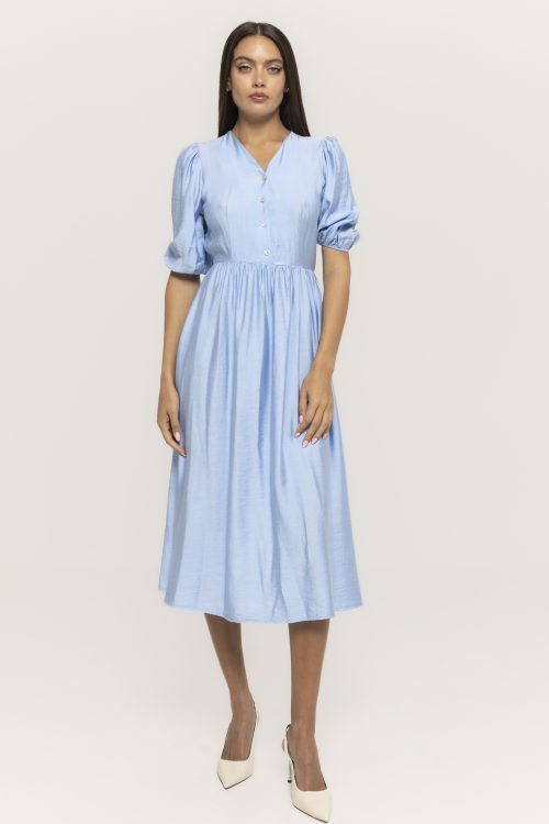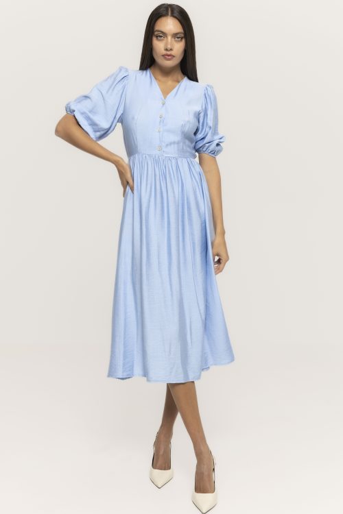 Materialul din care este realizată rochia cu elastic în talie Radiana este ușor și plăcut la atingere, asigurând confort pe tot parcursul zilei. Textura fluidă permite pielii să respire, ceea ce face ca această rochie să fie potrivită în special pentru sezonul cald, dar și pentru perioadele de tranziție. În același timp, materialul cade frumos pe corp, oferind un aspect elegant și bine definit.