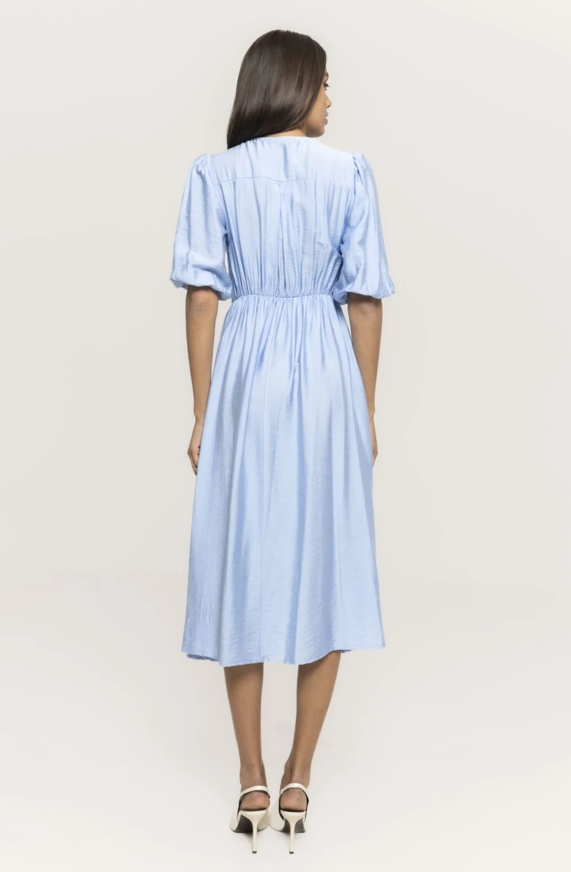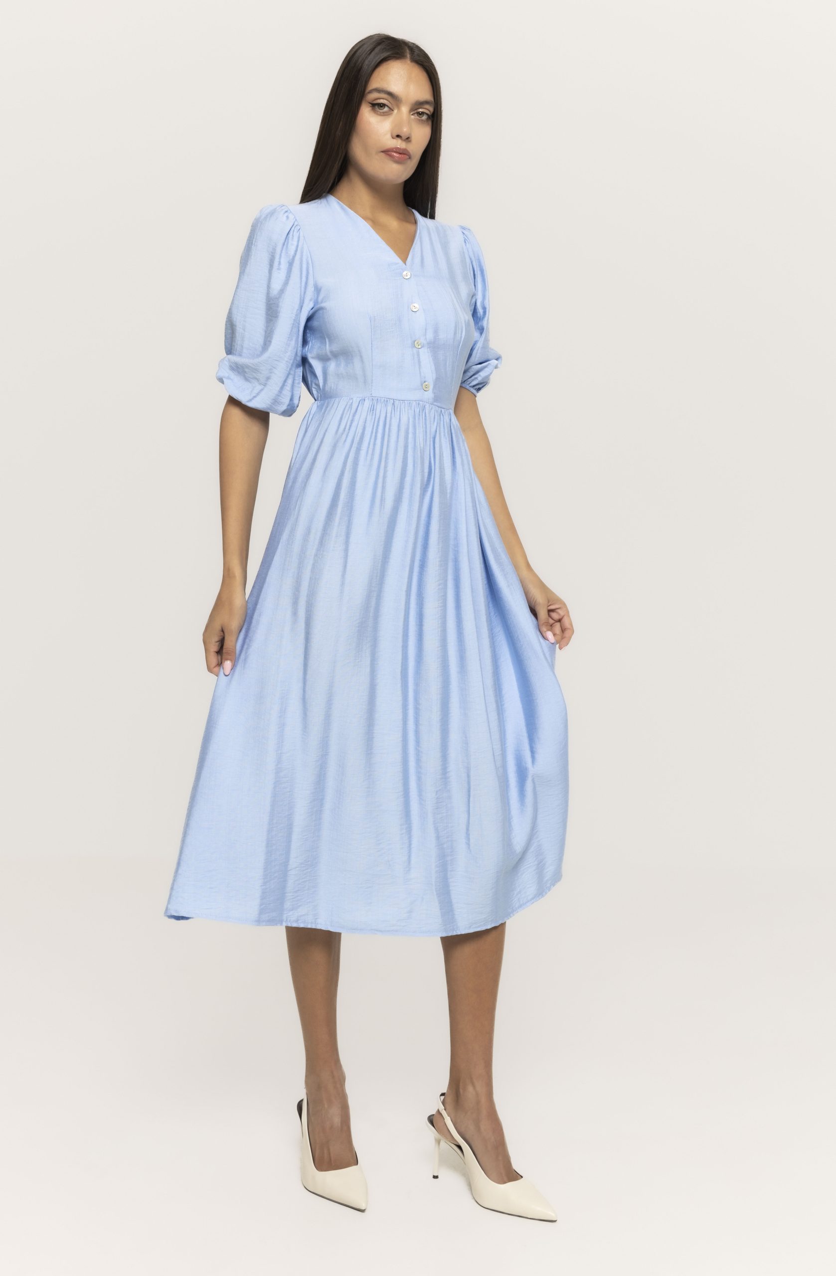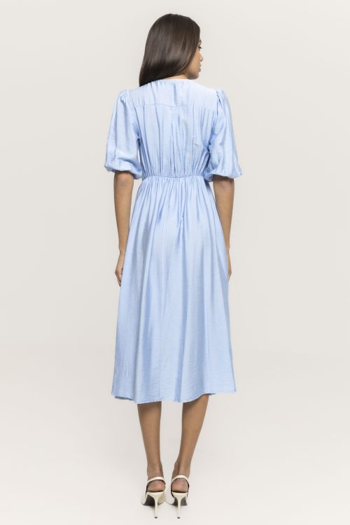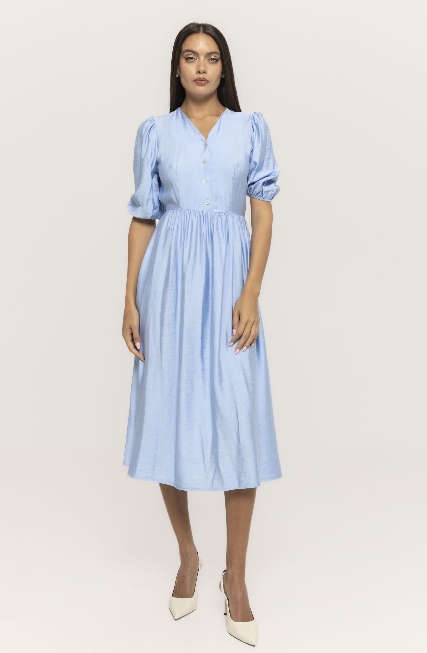 Materialul din care este realizată rochia cu elastic în talie Radiana este ușor și plăcut la atingere, asigurând confort pe tot parcursul zilei. Textura fluidă permite pielii să respire, ceea ce face ca această rochie să fie potrivită în special pentru sezonul cald, dar și pentru perioadele de tranziție. În același timp, materialul cade frumos pe corp, oferind un aspect elegant și bine definit.