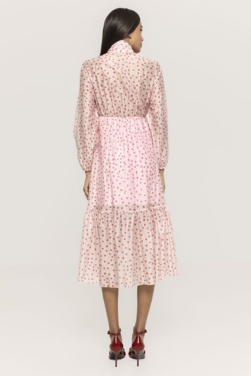Prin combinația dintre imprimeul clasic cu buline, detaliul feminin al fundei și croiala elegantă, această piesă transmite rafinament, bun gust și atenție pentru detalii. Rochia cu fundă și buline Angelina este alegerea perfectă pentru femeia care își dorește să îmbine feminitatea clasică cu eleganța modernă și să poarte piese care inspiră stil și încredere.