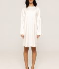Un aspect esențial la această piesă este modul în care sunt puse în valoare detaliile. Decolteul amplu tip bardot, cu umeri lăsați, adaugă rafinament și atrage atenția asupra liniei gâtului și a claviculei. Este genul de croi care oferă un echilibru între eleganța clasică și feminitatea modernă. În plus, forma lejer evazată a fustei midi oferă libertate de mișcare, dar și o notă de grație, potrivită pentru dans sau plimbări elegante.