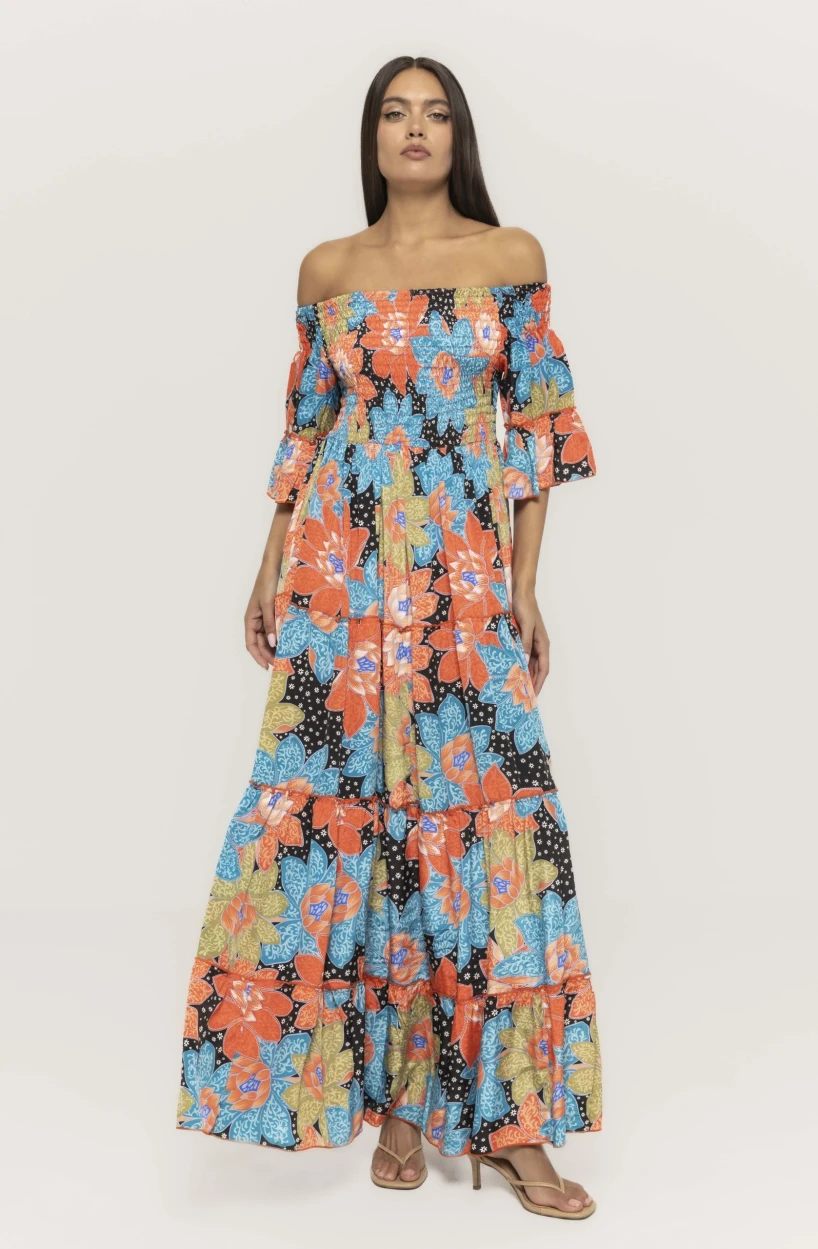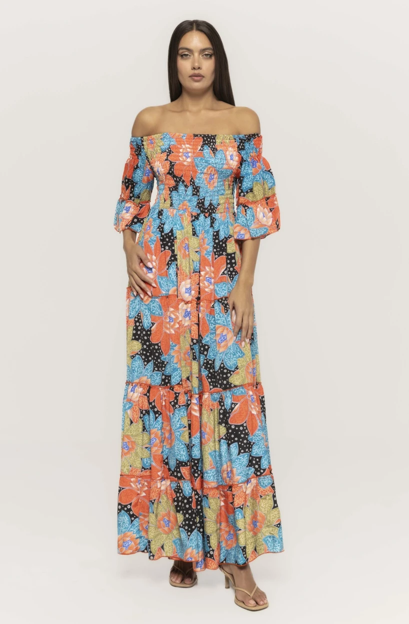 Versatilitatea este unul dintre principalele atuuri ale acestei rochii lungi cu imprimeu și mânecă trei sferturi Emilia. Poate fi purtată în timpul zilei, alături de sandale joase sau espadrile, pentru un look casual chic. În același timp, poate fi transformată într-o ținută elegantă de seară, prin adăugarea unor accesorii rafinate și a unei perechi de sandale cu toc.