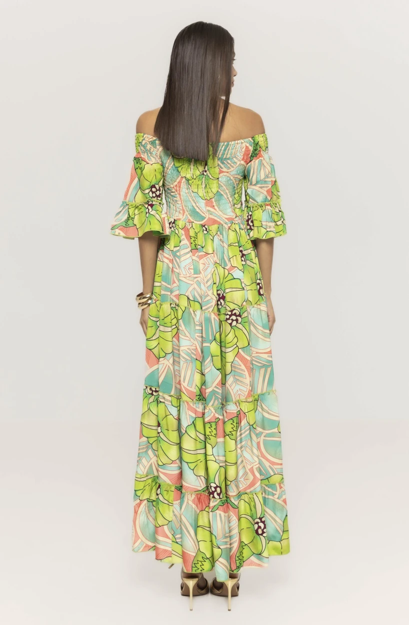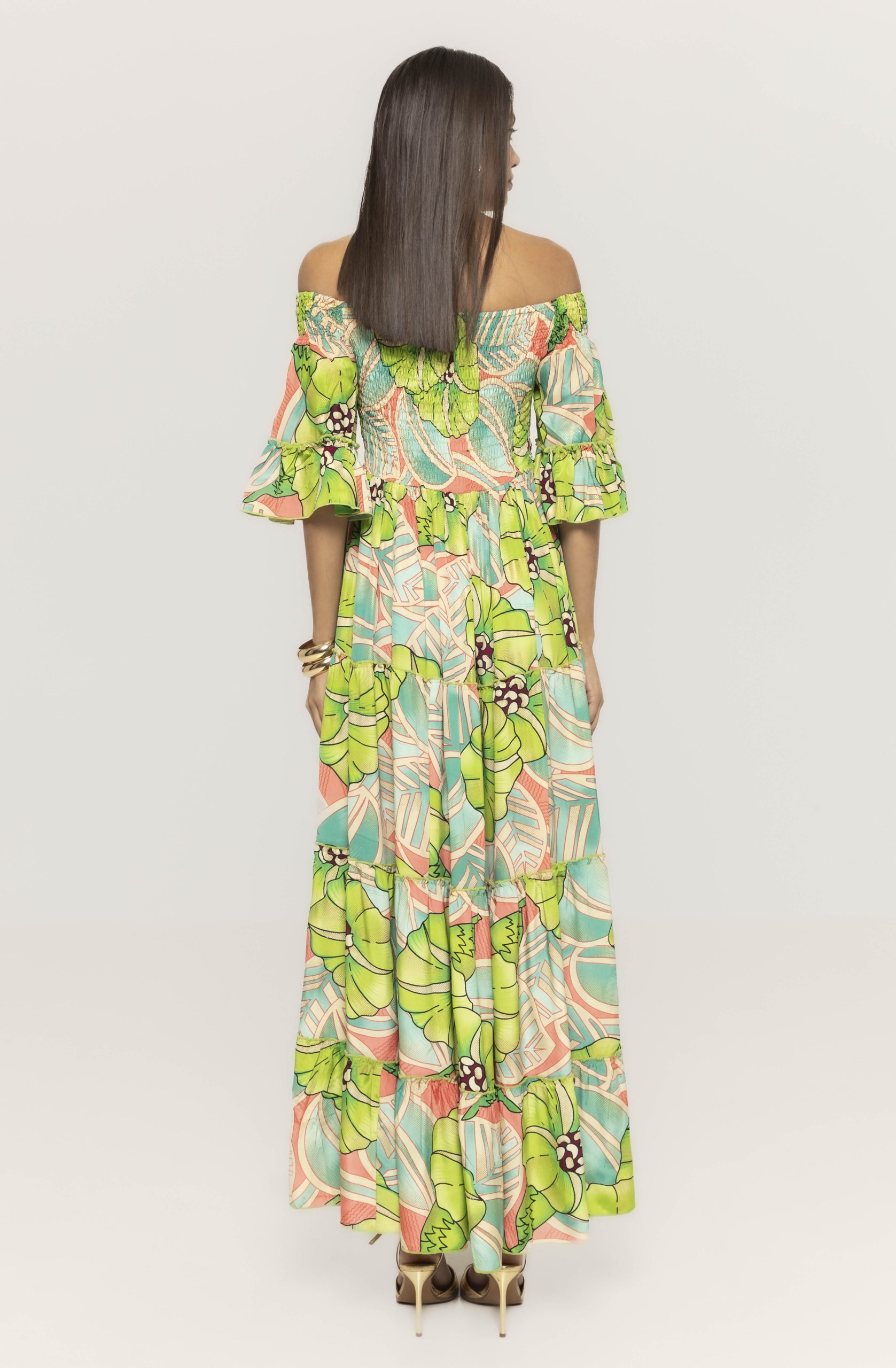 Rochie lungă cu imprimeu și mânecă trei sferturi Emilia