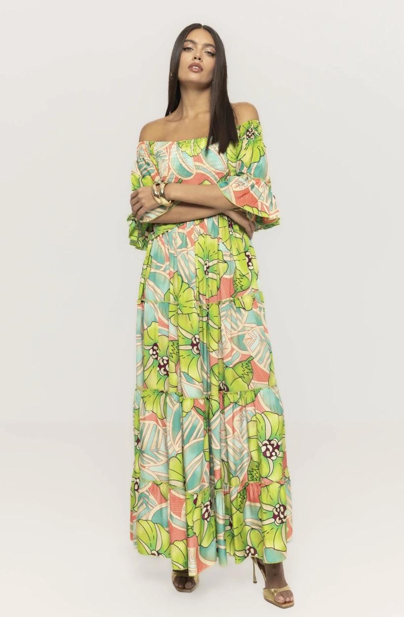 Mânecile trei sferturi ale rochiei lungi cu imprimeu și mânecă trei sferturi Emilia oferă un echilibru perfect între confort și acoperire, fiind potrivite pentru mai multe tipuri de siluetă și pentru diferite sezoane. Acest detaliu o face ideală pentru zilele de primăvară și toamnă, dar și pentru serile mai răcoroase de vară.