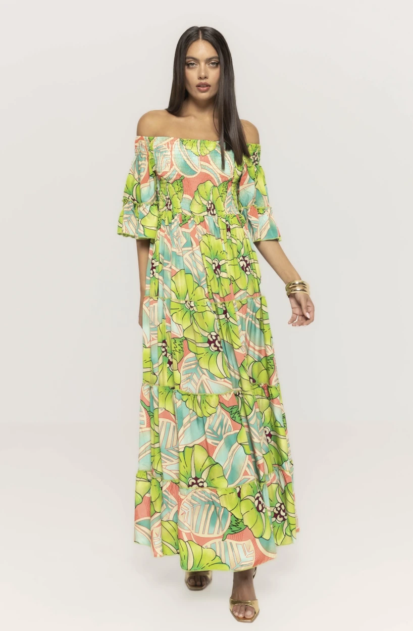 Versatilitatea este unul dintre principalele atuuri ale acestei rochii lungi cu imprimeu și mânecă trei sferturi Emilia. Poate fi purtată în timpul zilei, alături de sandale joase sau espadrile, pentru un look casual chic. În același timp, poate fi transformată într-o ținută elegantă de seară, prin adăugarea unor accesorii rafinate și a unei perechi de sandale cu toc.