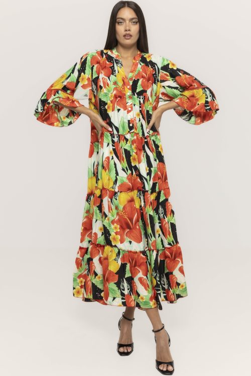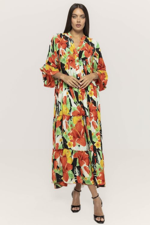 În concluzie, rochia lungă cu imprimeu și nasturi Patricia este o alegere ideală pentru un stil feminin, rafinat și versatil, care pune în valoare naturalețea și eleganța fiecărei femei.