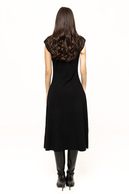 Decolteul delicat completează perfect designul, punând în valoare bustul într-un mod subtil, dar atrăgător. Este o rochie care inspiră bun gust și simplitate sofisticată, făcând-o ușor de accesorizat în funcție de stilul personal și de ocazie. Poți opta pentru o pereche de cercei statement și sandale elegante pentru un look de seară, sau o geantă minimalistă și pantofi comozi pentru un outfit de zi. Versatilitatea acestei rochii face să fie extrem de ușor de integrat în multe stiluri diferite, de la casual chic până la elegant glam.