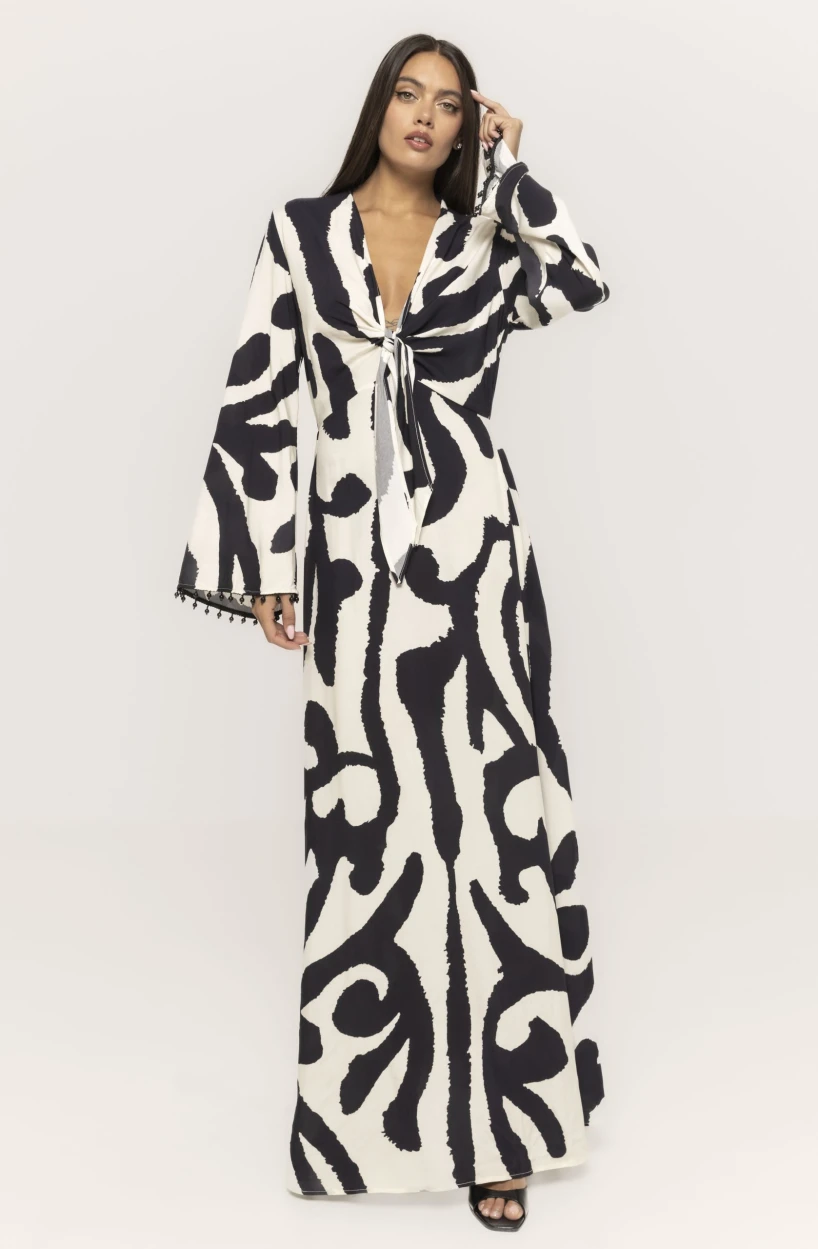 Rochia lungă cu mâneci tip clopot Kara este alegerea ideală pentru femeia care iubește eleganța relaxată și feminitatea modernă. Construită dintr-un material fluid și plăcut la atingere, această rochie urmărește delicat linia corpului, oferind o siluetă armonioasă și rafinată. Designul său lung adaugă un aer sofisticat, în timp ce mânecile tip clopot aduc un plus de romantism și mișcare la fiecare pas.