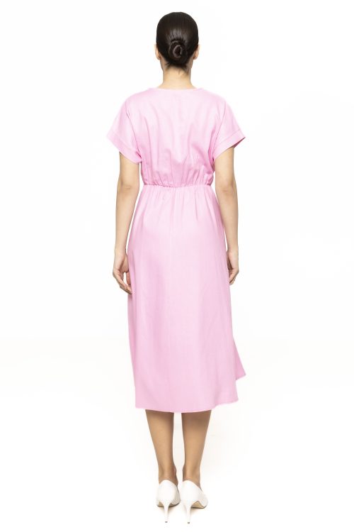 Lungimea midi a rochiei contribuie la aspectul său sofisticat și versatil. Rochiile midi sunt foarte populare în moda contemporană deoarece oferă un echilibru perfect între eleganță și confort. Această lungime permite purtarea rochiei în numeroase contexte și o face potrivită atât pentru evenimente speciale, cât și pentru ținutele de zi.