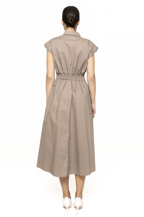 Unul dintre elementele definitorii ale rochiei midi cu guler Narcisa este croiala sa armonioasă, care pune în valoare silueta într-un mod natural. Partea superioară este inspirată de stilul clasic al cămășilor, având un guler elegant care adaugă rafinament și un aer sofisticat întregii ținute. Acest detaliu transformă rochia într-o piesă modernă și stilată, ideală pentru femeile care apreciază eleganța discretă.