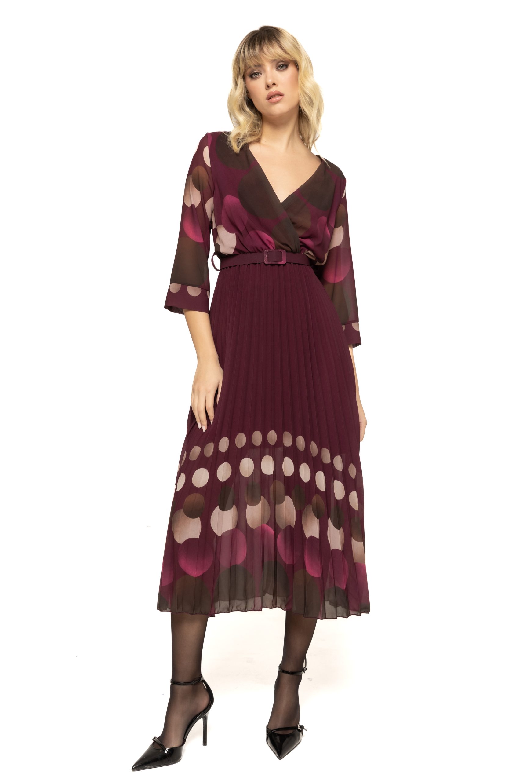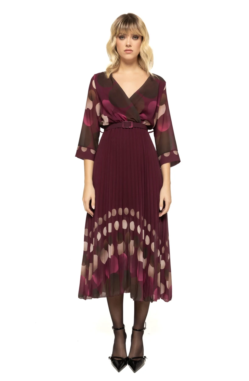 Rochie plisată cu imprimeu Delia – feminitate, eleganță și rafinament într-o singură piesă