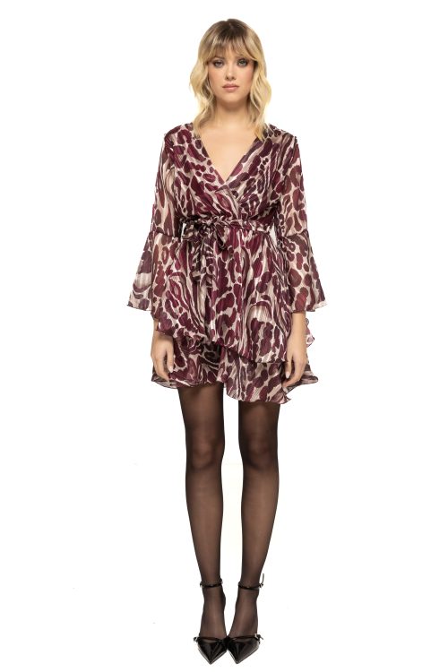 Rochie scurtă cu imprimeu Vanda – feminitate, culoare și rafinament în fiecare detaliu