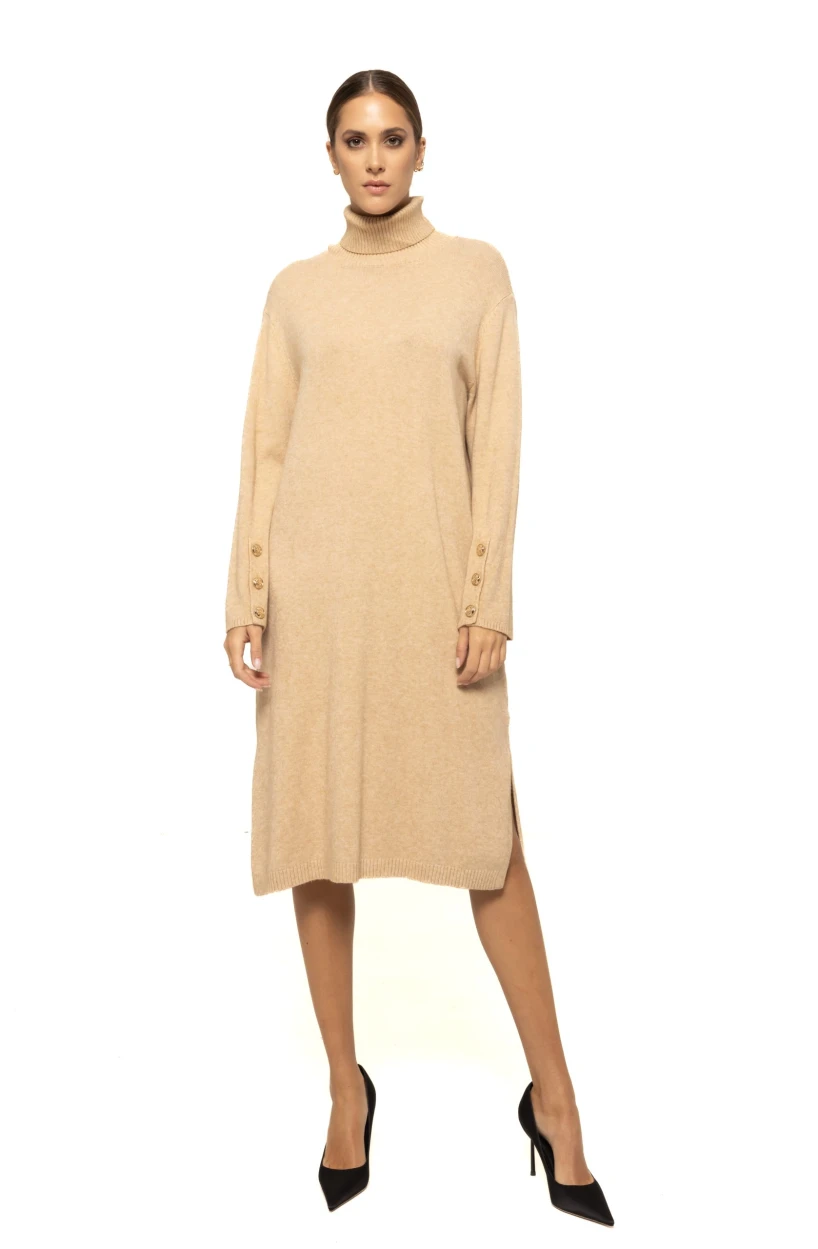 Rochie tricotată cu nasturi la mâneci Mona – eleganță, confort și rafinament într-o singură piesă