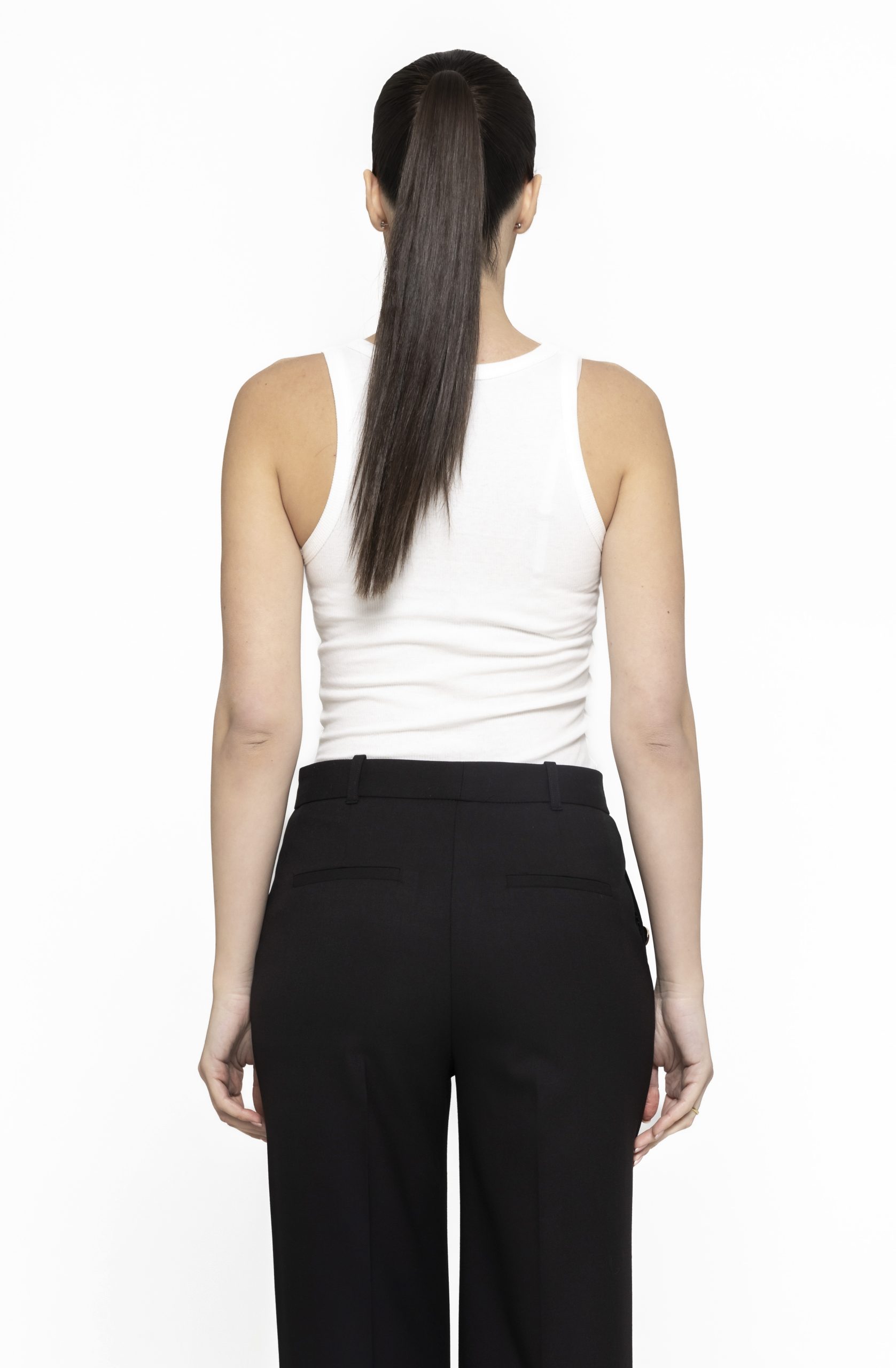 Croiala acestui top cu aplicație floare Bianca este potrivită pentru diferite tipuri de siluetă. Linia simplă și echilibrată oferă confort și libertate de mișcare, fără a compromite aspectul estetic. Poate fi purtat atât pe exterior, pentru un look relaxat, cât și introdus în talie, pentru o ținută mai structurată.